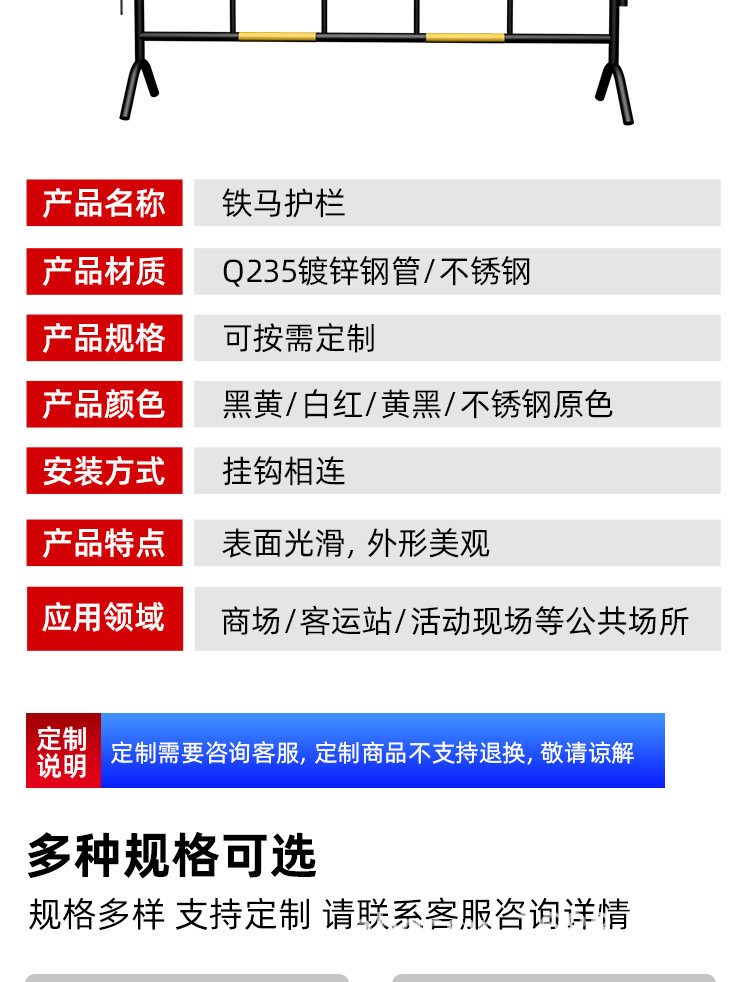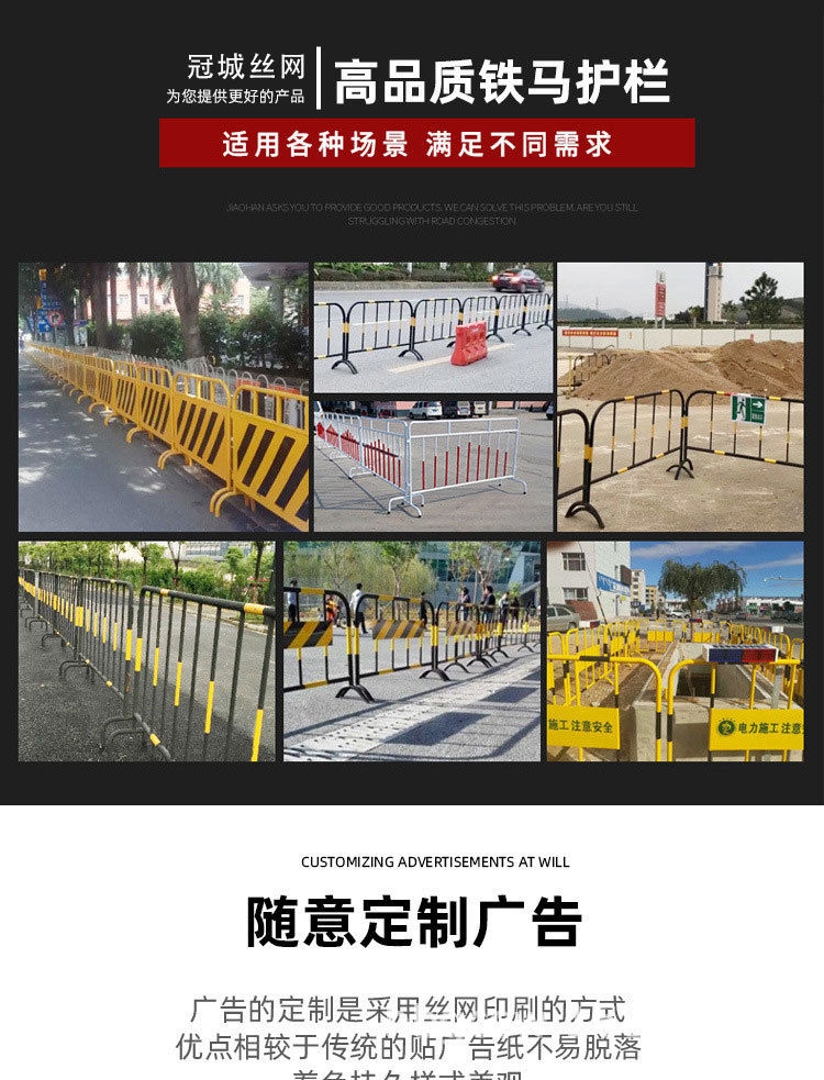 Tie Ma Guardrail Factory 직접 판매 건설 격리 및 보호 검정색 및 노란색 울타리 교통 경고 안전 충돌 방지 장벽 Guancheng스토어 가기