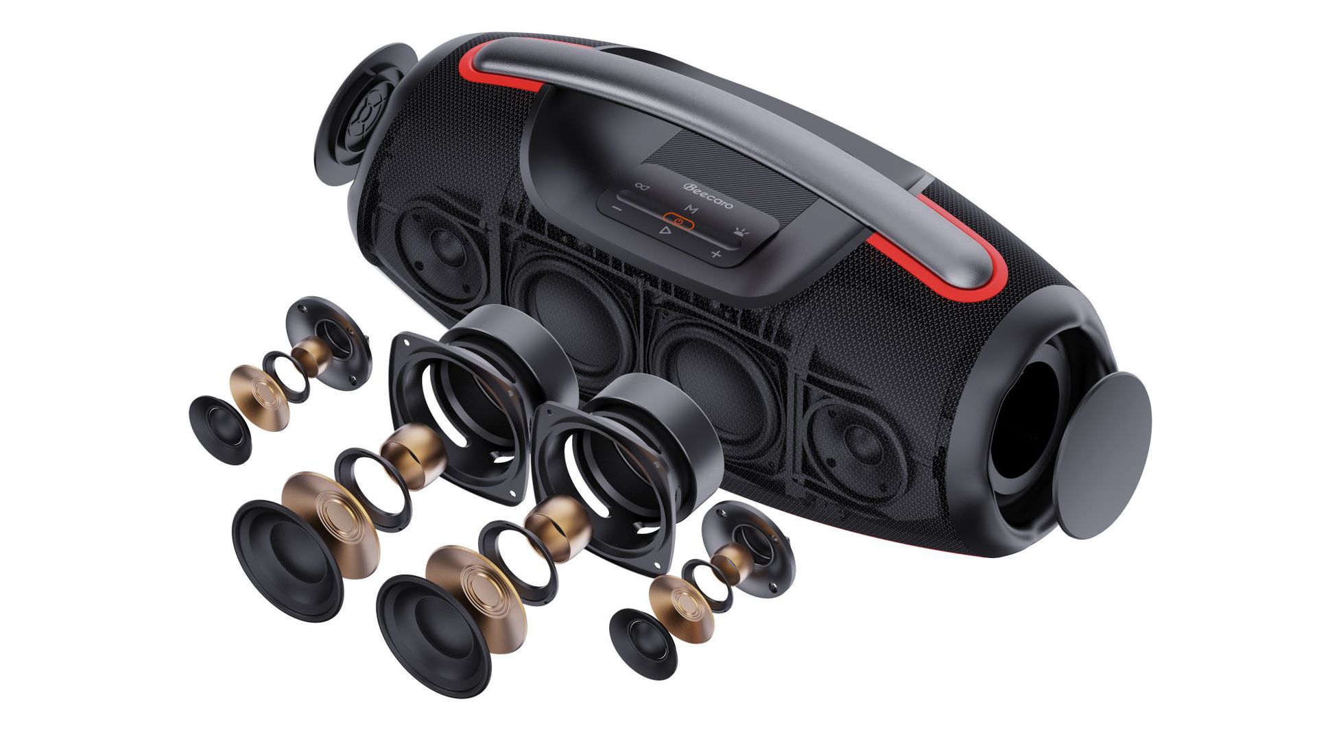 便携式蓝牙扬声器,配备4英寸*2低音箱+2.5英寸*两扬声器+被动散热器*2