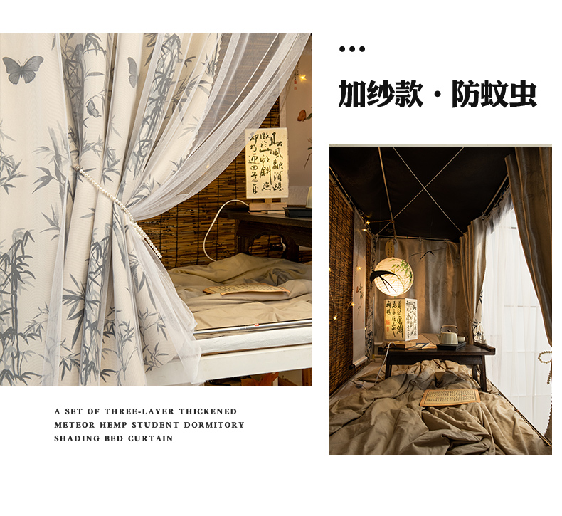 새로운 중국 스타일 기숙사 차광 침대 커튼 대학생 상단 침대 두꺼운 커튼 소녀 기숙사 하단 침대 커튼스토어 가기