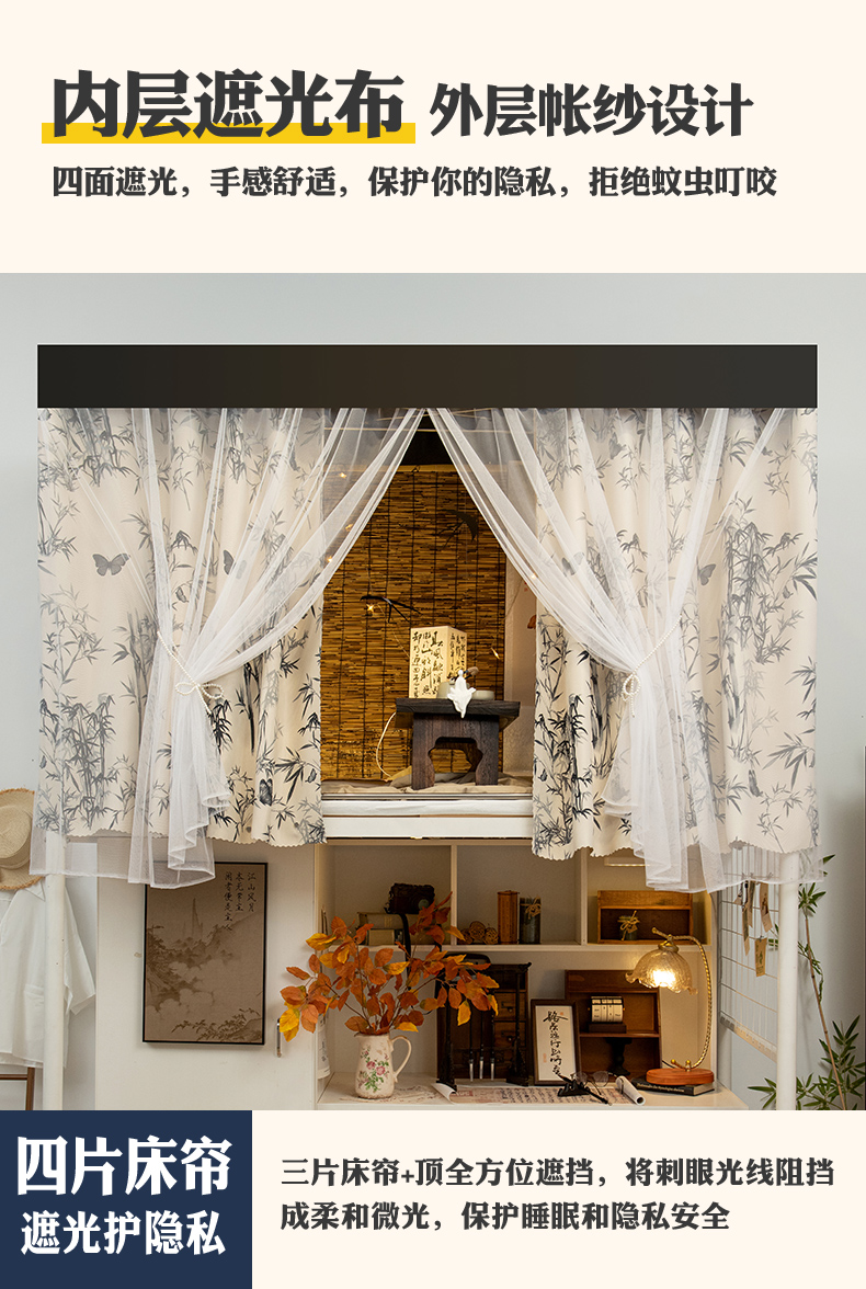 새로운 중국 스타일 기숙사 차광 침대 커튼 대학생 상단 침대 두꺼운 커튼 소녀 기숙사 하단 침대 커튼