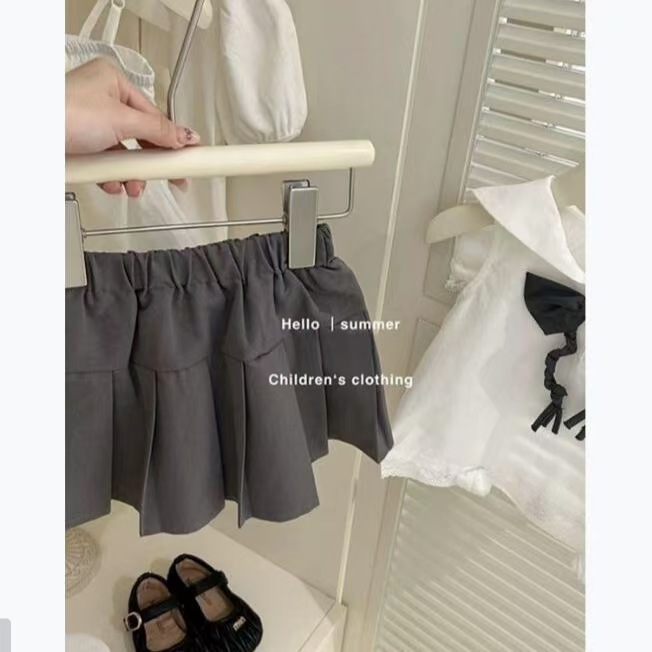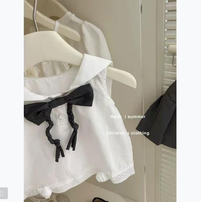 여자 2025 새로운 여름 정장 유행 아기 소녀 해군 칼라 민소매 조끼 정장 스커트 투피스 세트스토어 가기