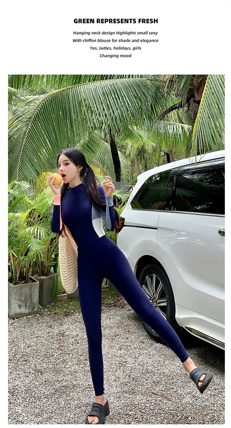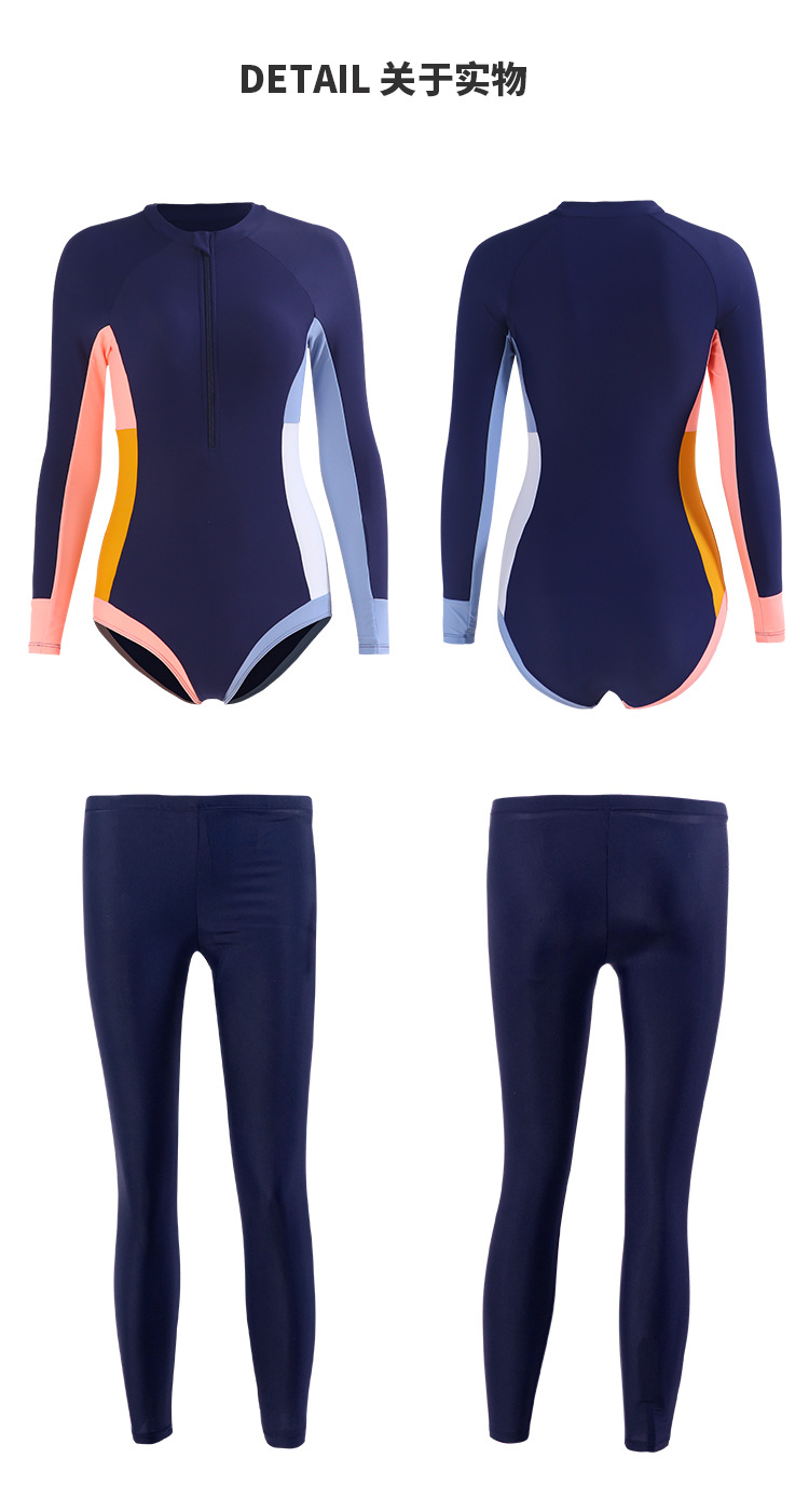 국경 간 새로운 색상 매칭 긴팔 자외선 차단 삼각형 서핑 슈트 여성 한국 스타일 섹시한 꽉 수영복 대외 무역 보수적 인 수영복