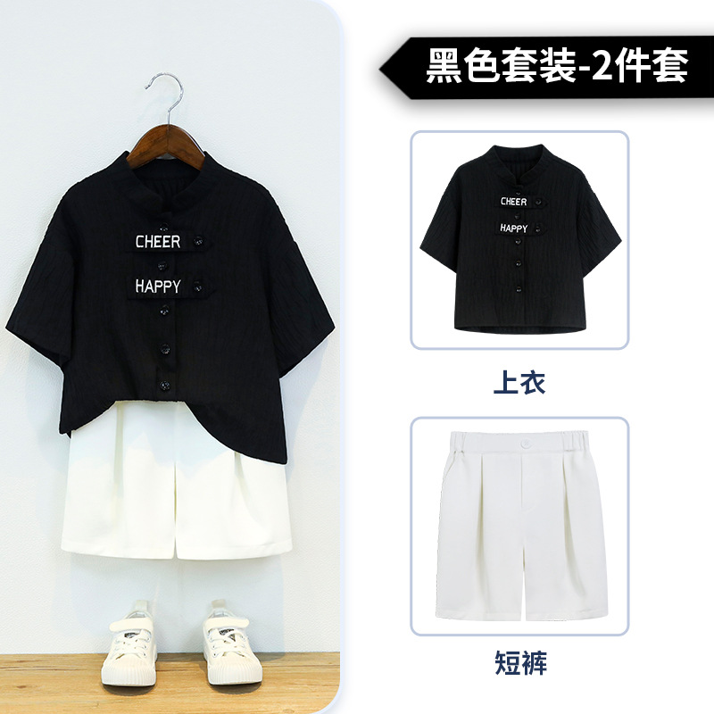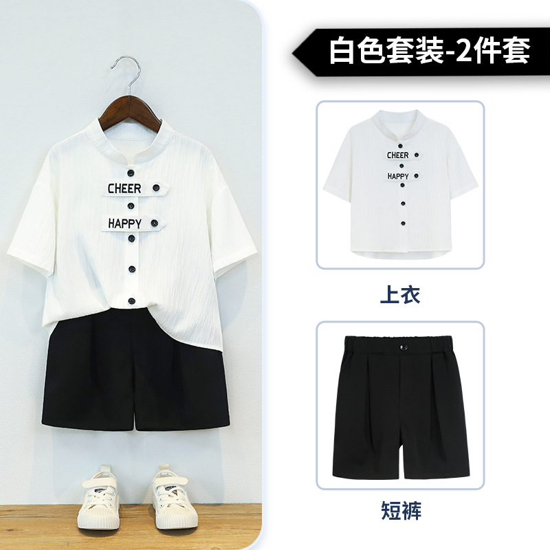 남아 여름 정장, 아동 시원한 반팔 셔츠, 중대형 아동 캐주얼 휴가 라이트 탑, 1세 드레스