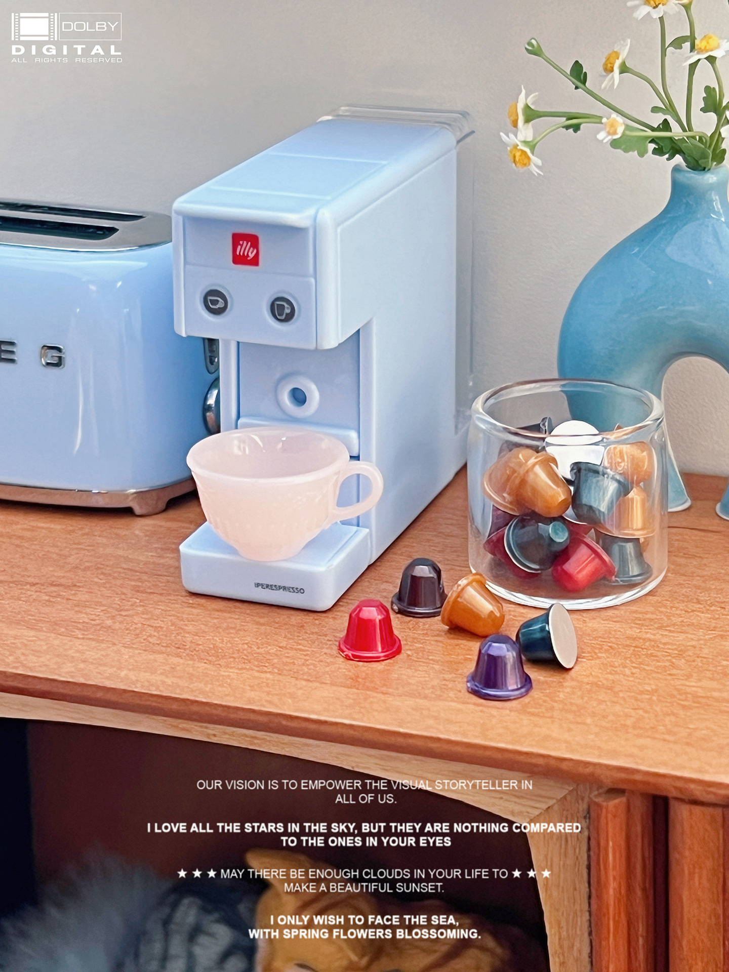 장난감] 5색 캡슐 커피 머신 액세서리 6점 인형의 집 장식품 미니어처 모델 시뮬레이션