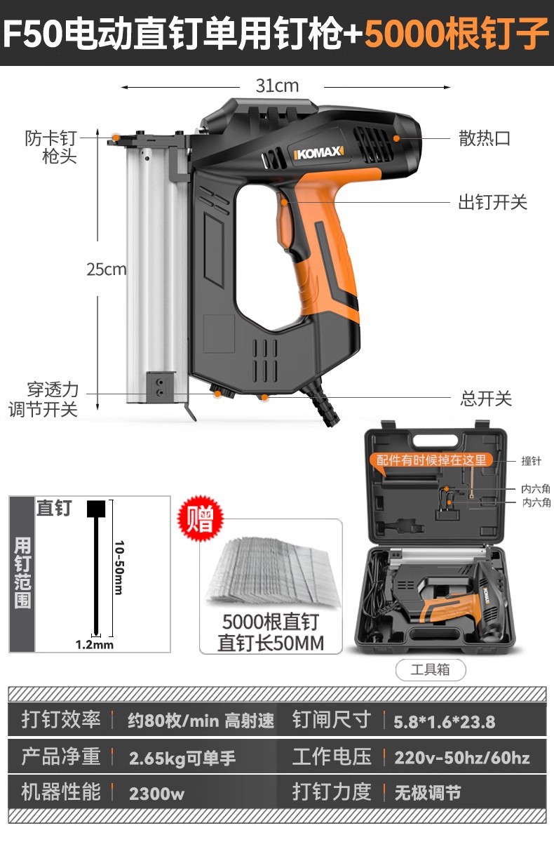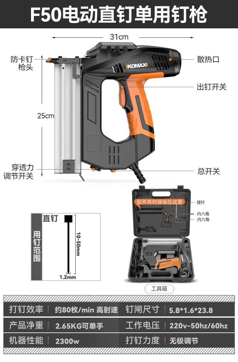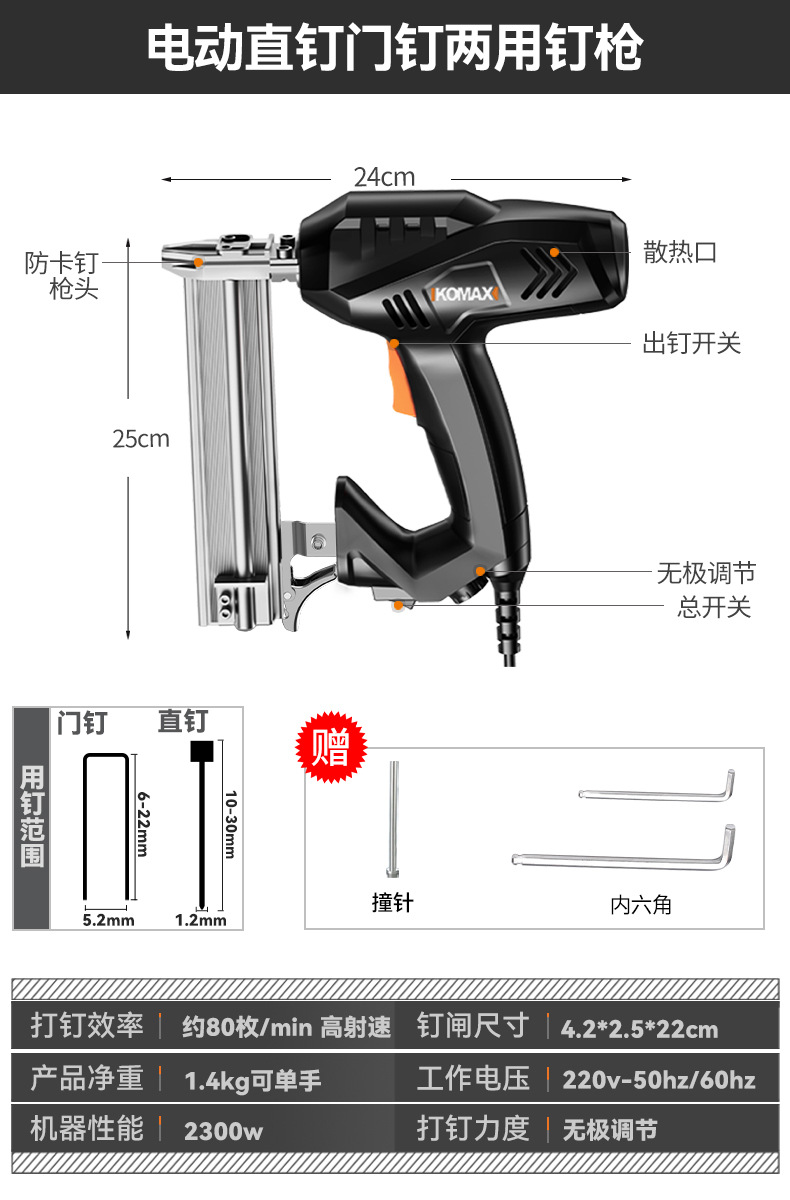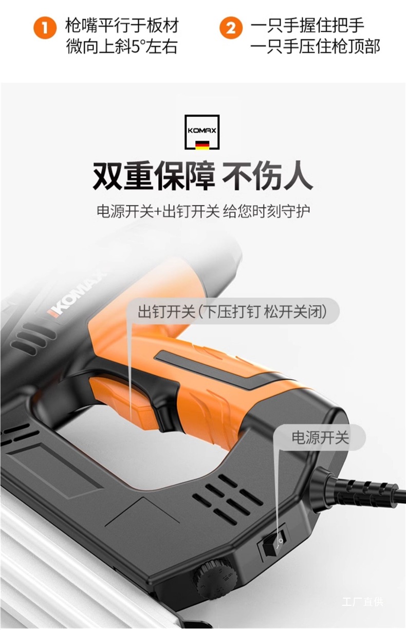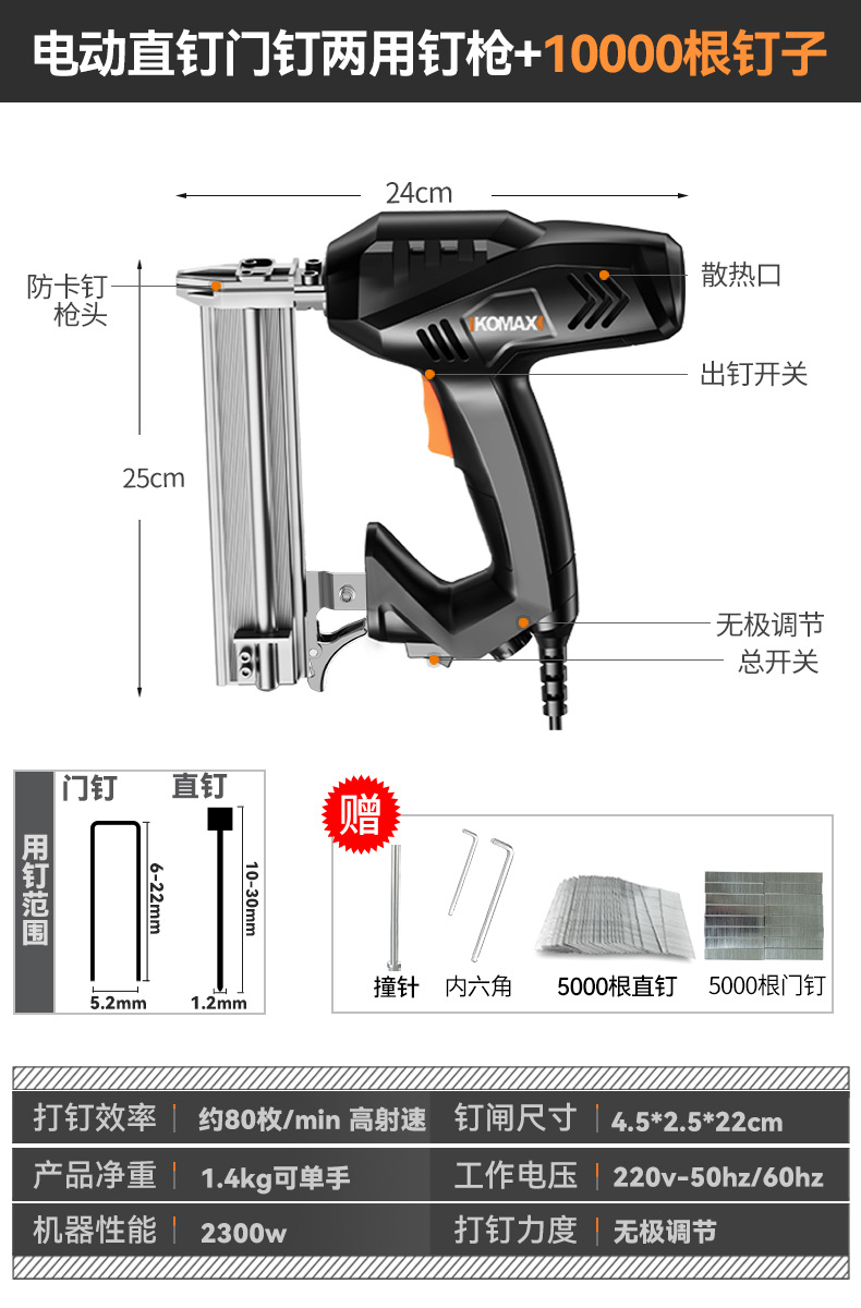Komax 전기 네일건, 직선못, 도어못, 이중 목적 코드못, 목공도구, 에어네일건, 군용 스틸 네일건