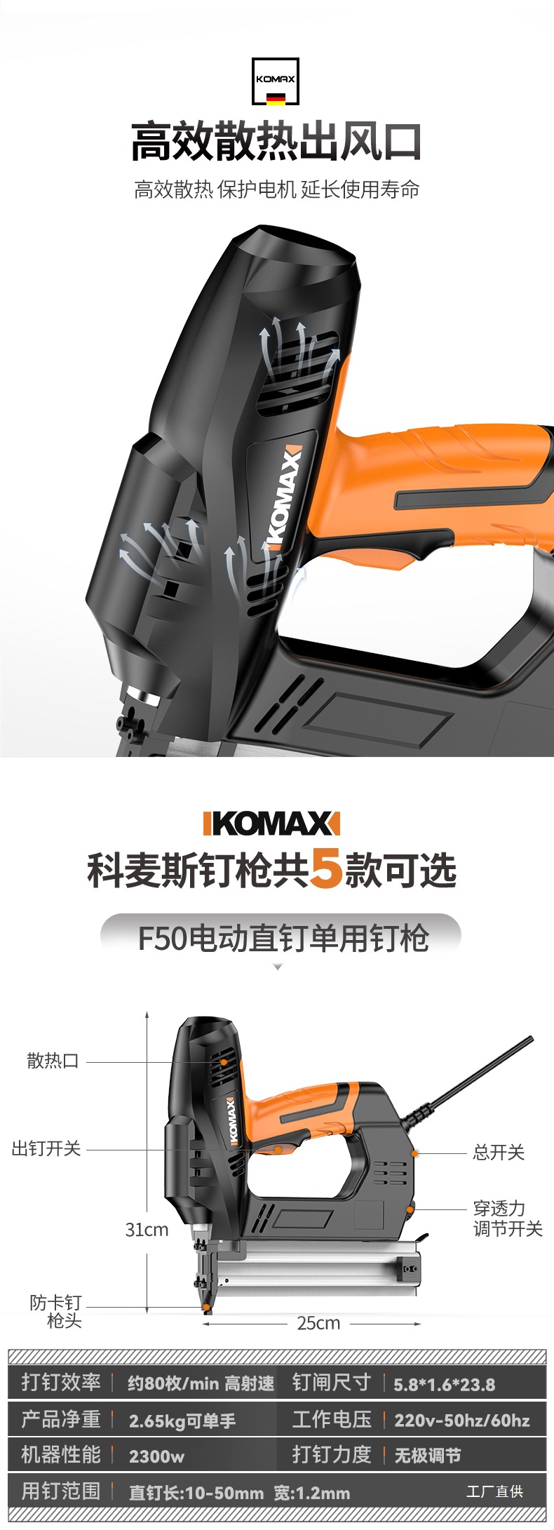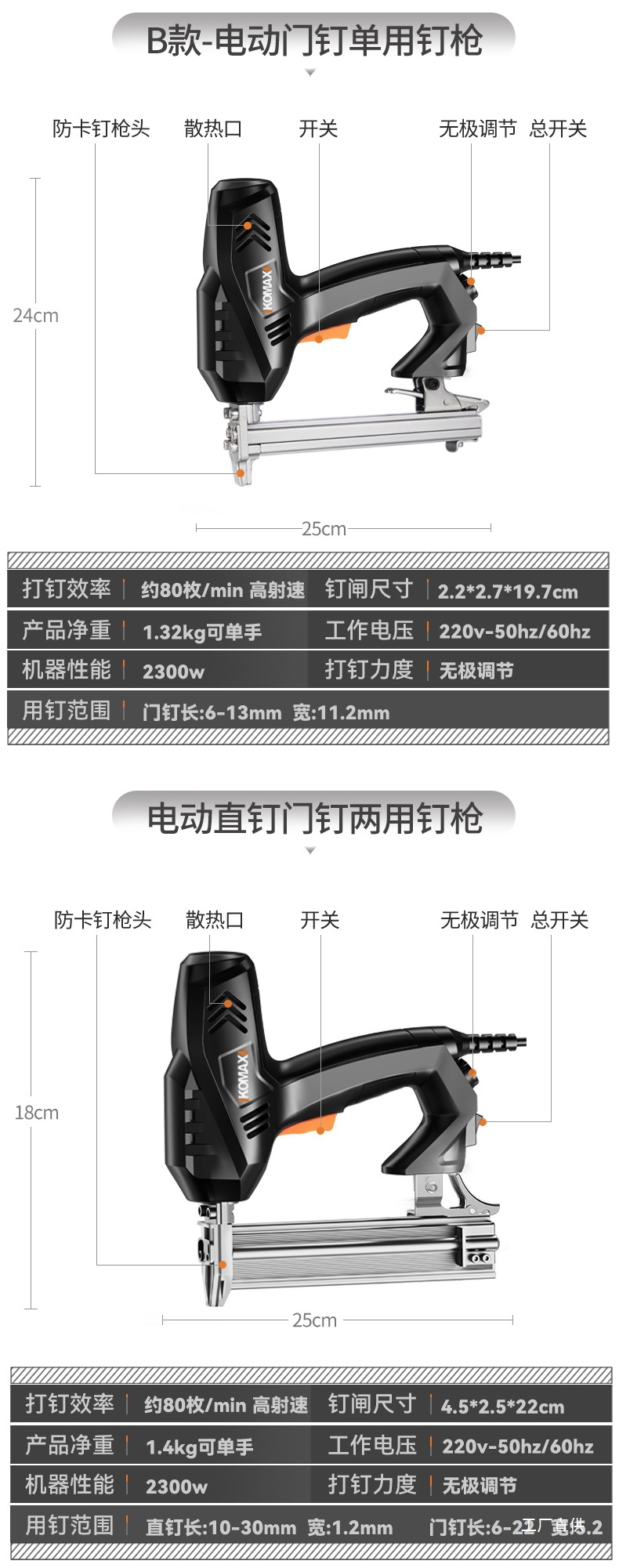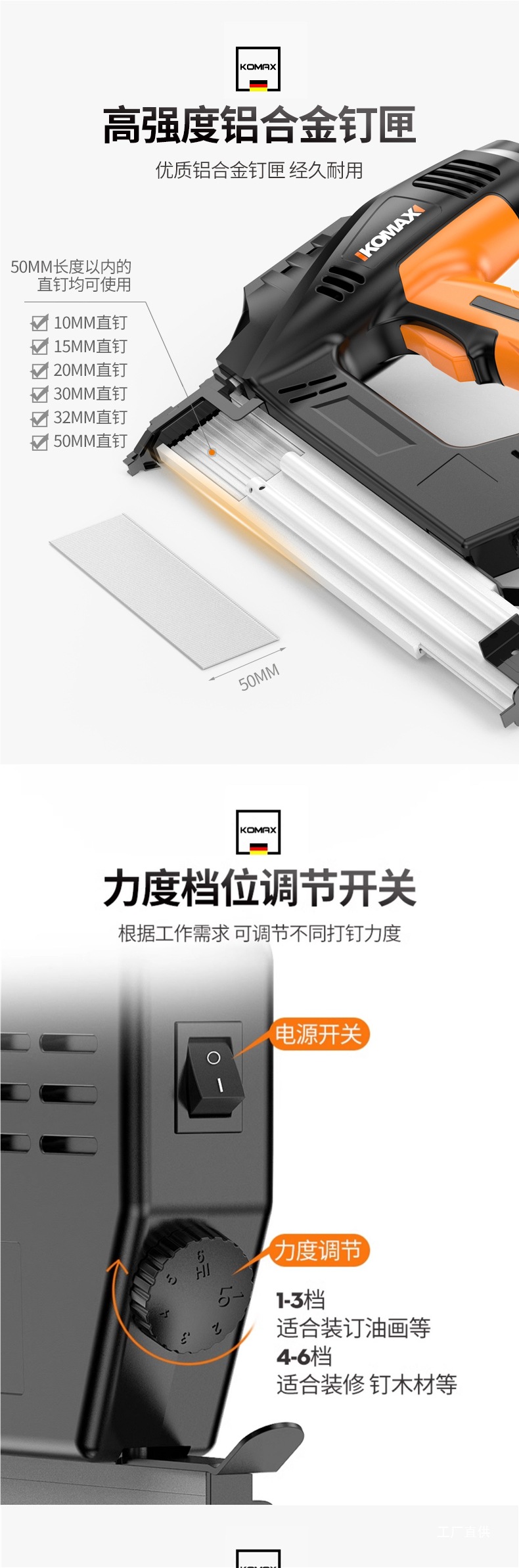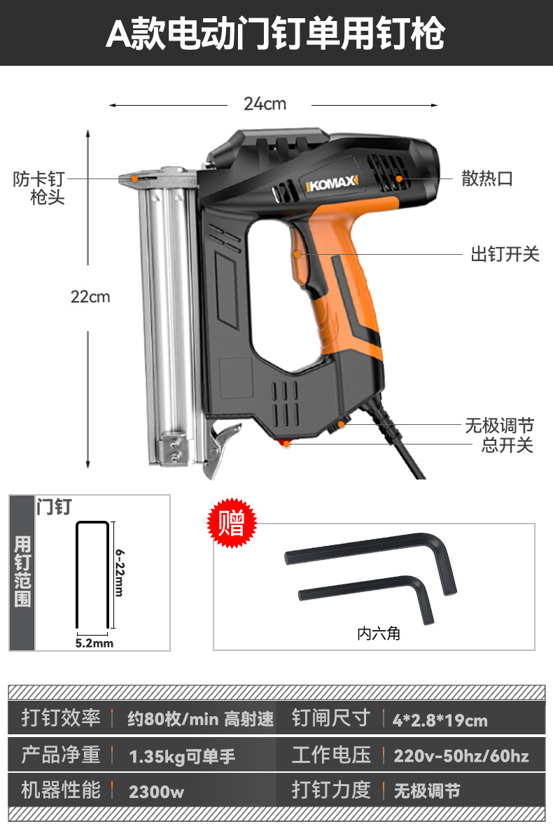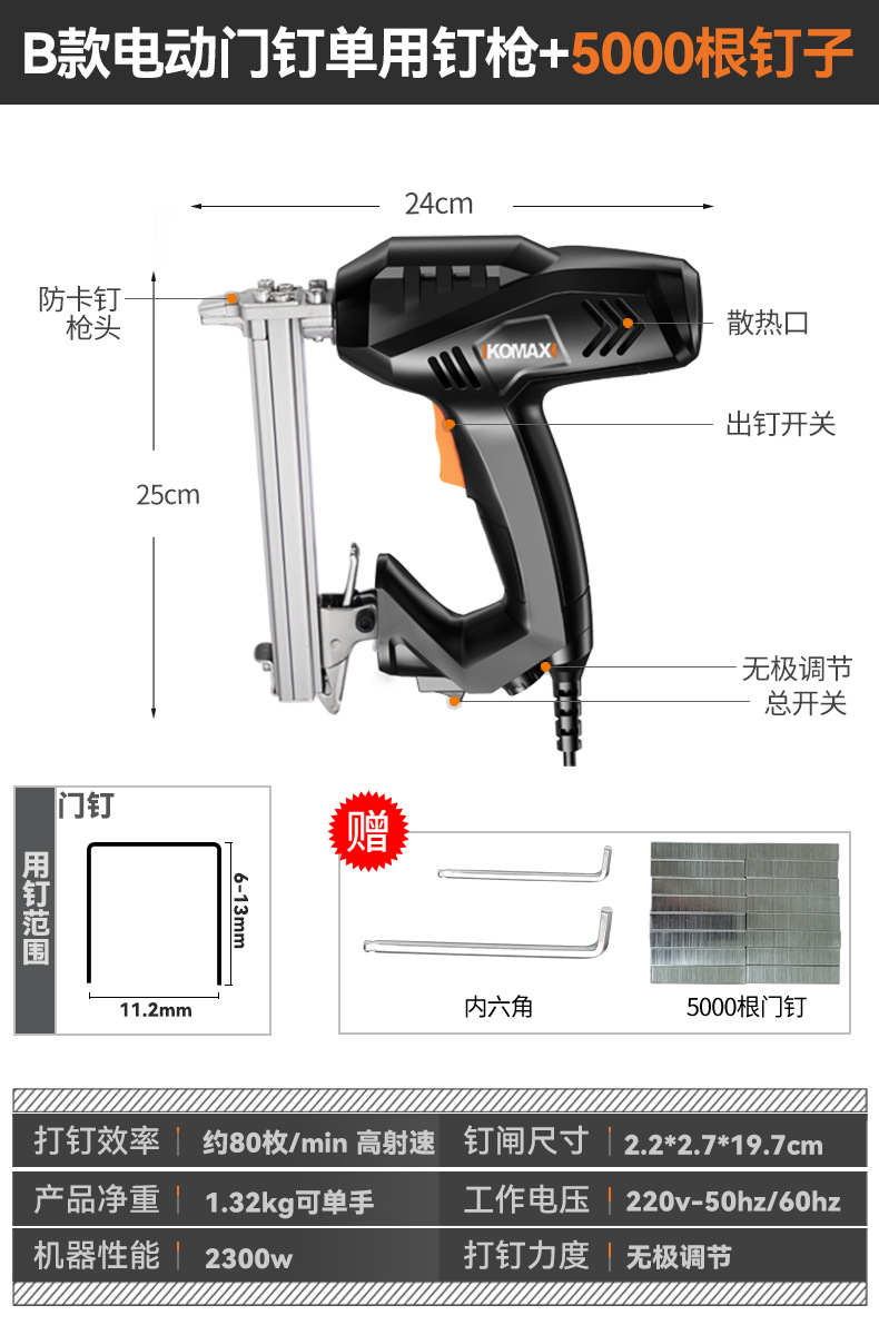 Komax 전기 네일건, 직선못, 도어못, 이중 목적 코드못, 목공도구, 에어네일건, 군용 스틸 네일건