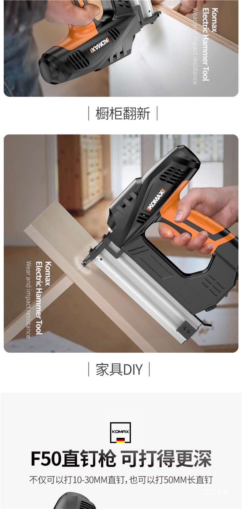 Komax 전기 네일건, 직선못, 도어못, 이중 목적 코드못, 목공도구, 에어네일건, 군용 스틸 네일건스토어 가기