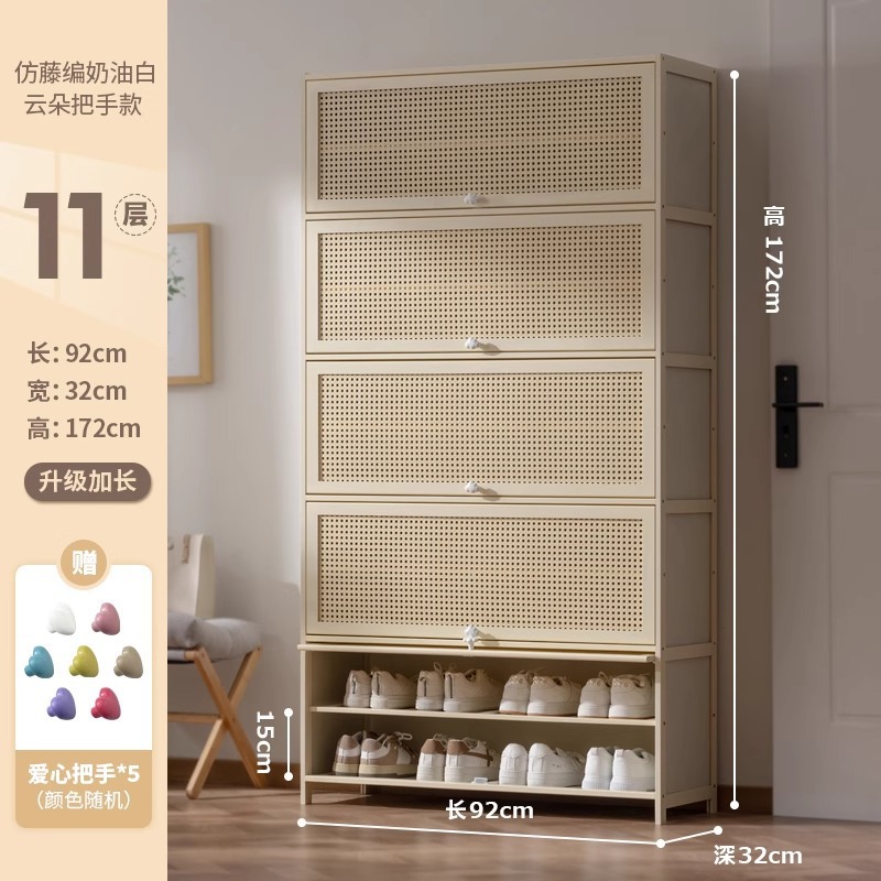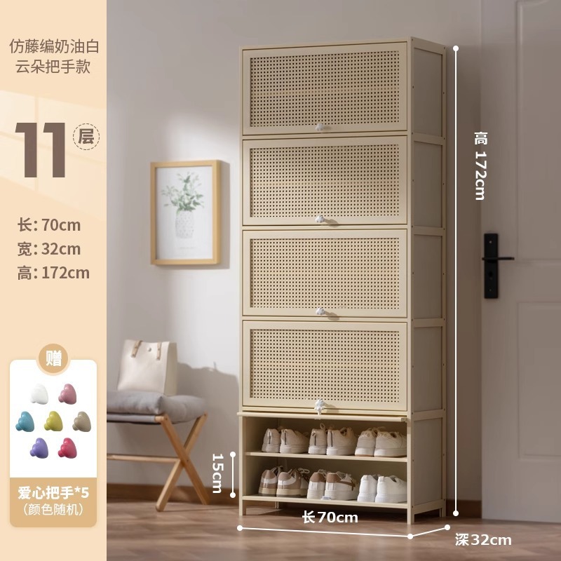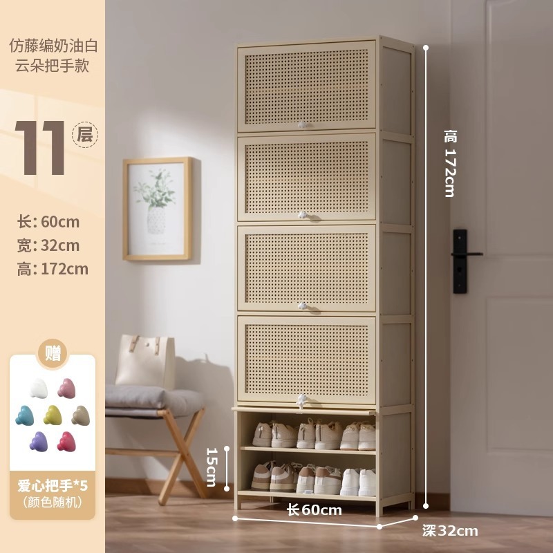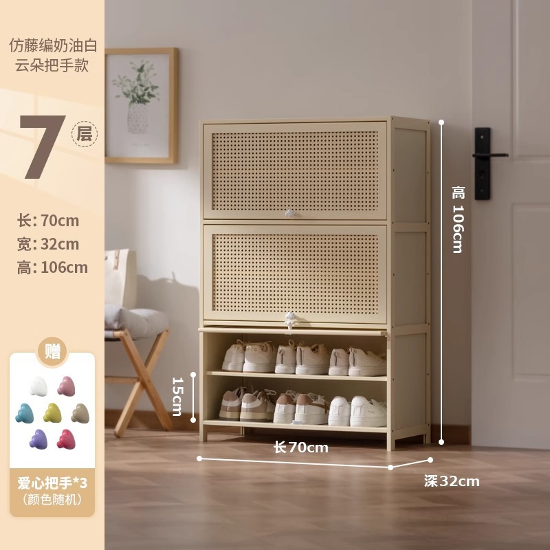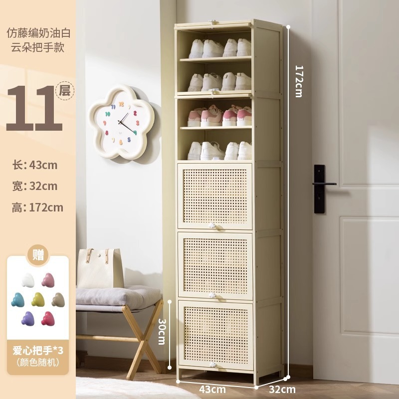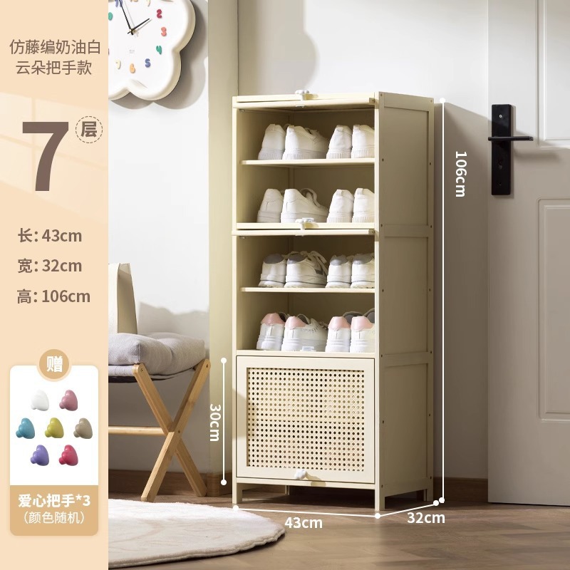 가정용 입구를 위한 새로운 크림 스타일 도파민 신발장, 간단한 출입구, 다층 방진 보관 신발장, 작고 좁은 대나무