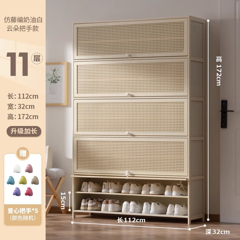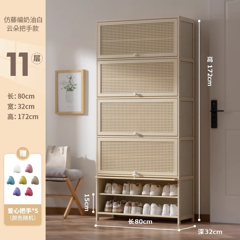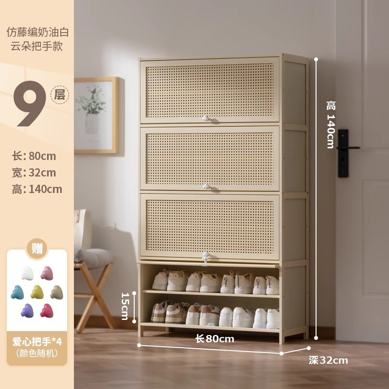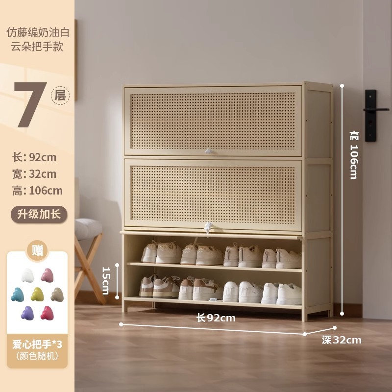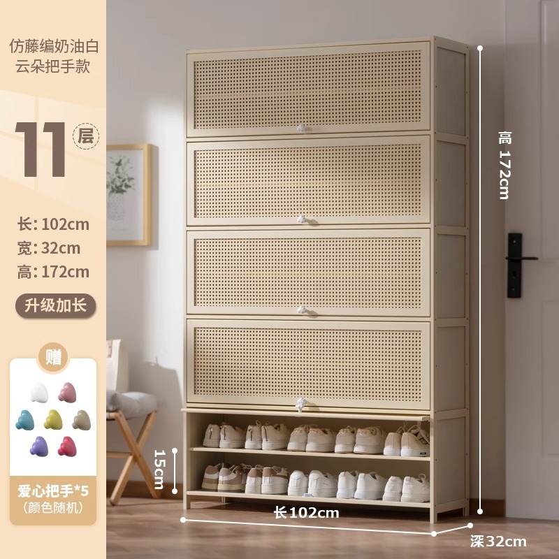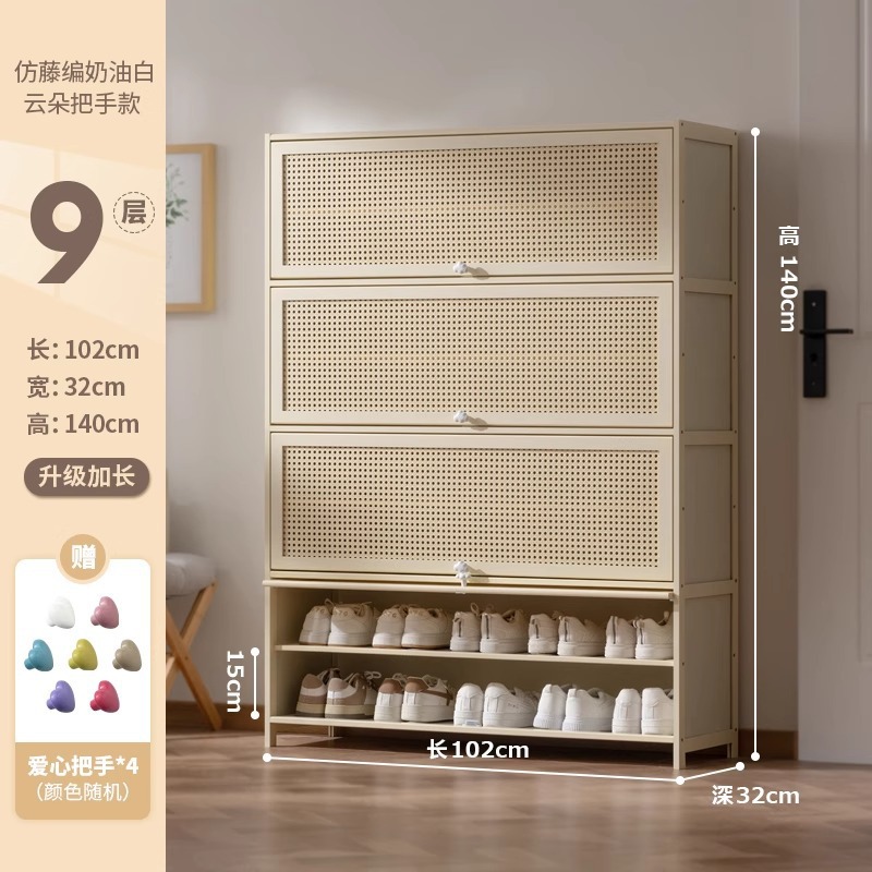가정용 입구를 위한 새로운 크림 스타일 도파민 신발장, 간단한 출입구, 다층 방진 보관 신발장, 작고 좁은 대나무