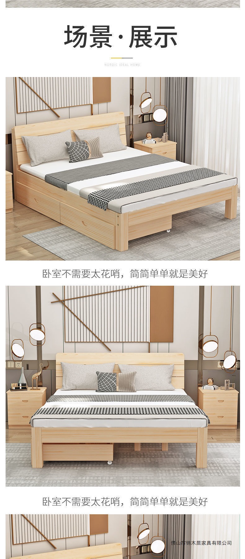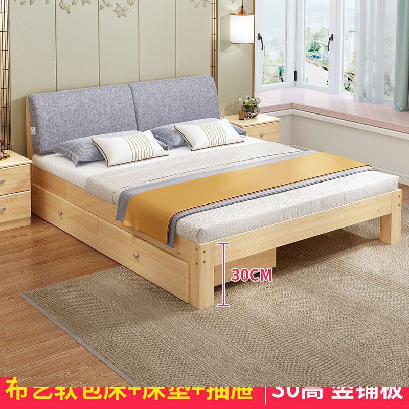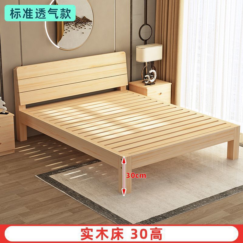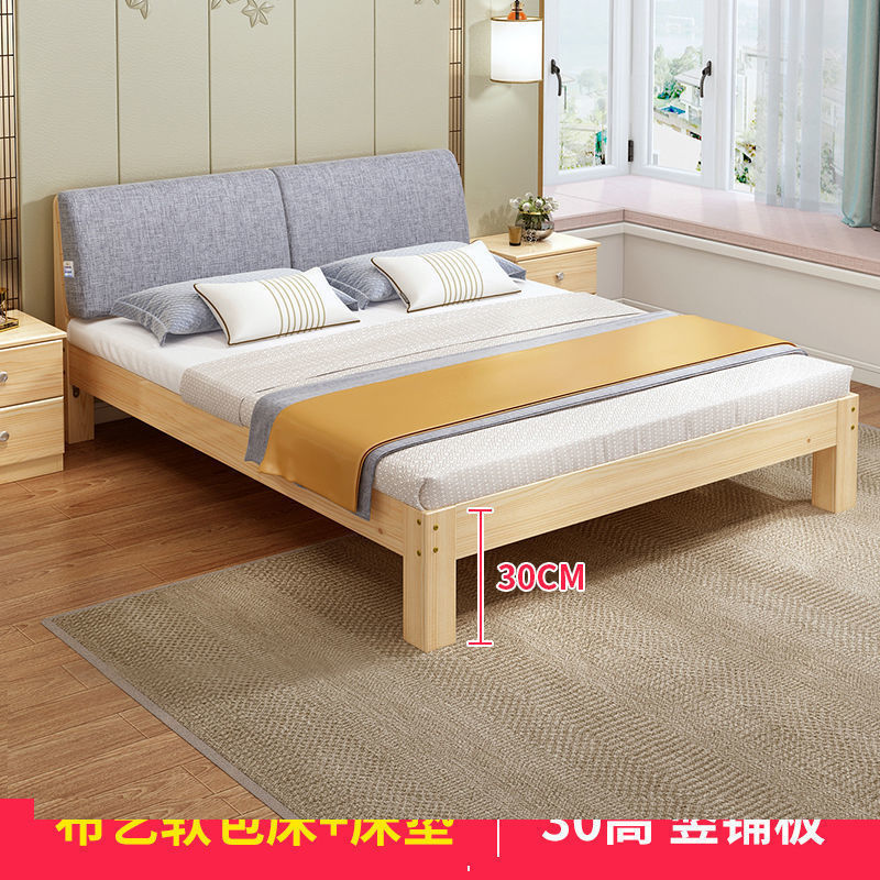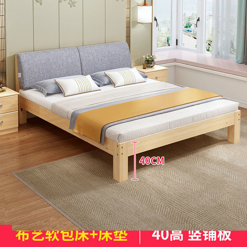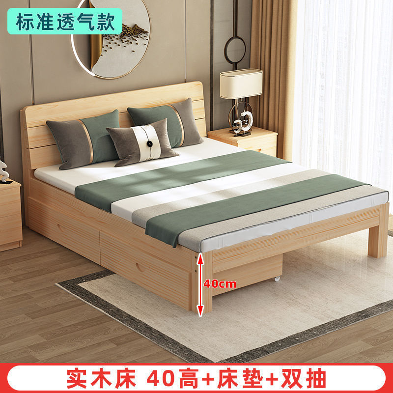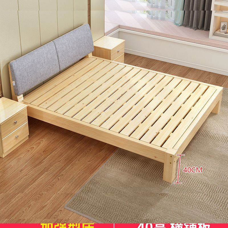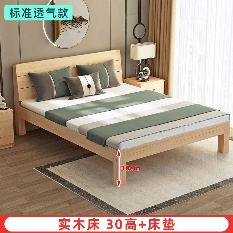 두꺼운 원목 침대, 심플 모던 더블 침대, 경제적인 싱글 침대, 홈 마스터 침실 임대용 원목 침대