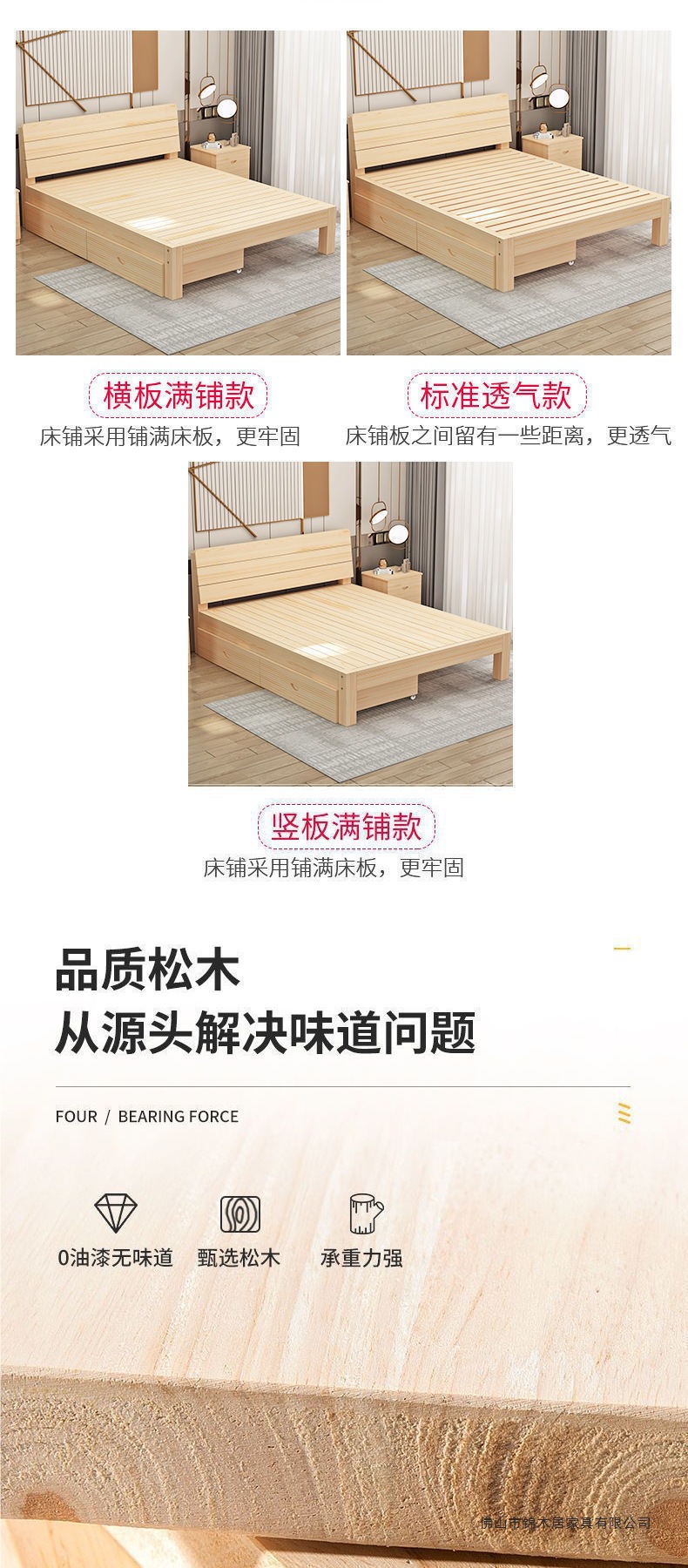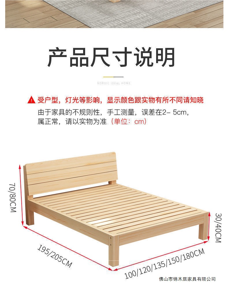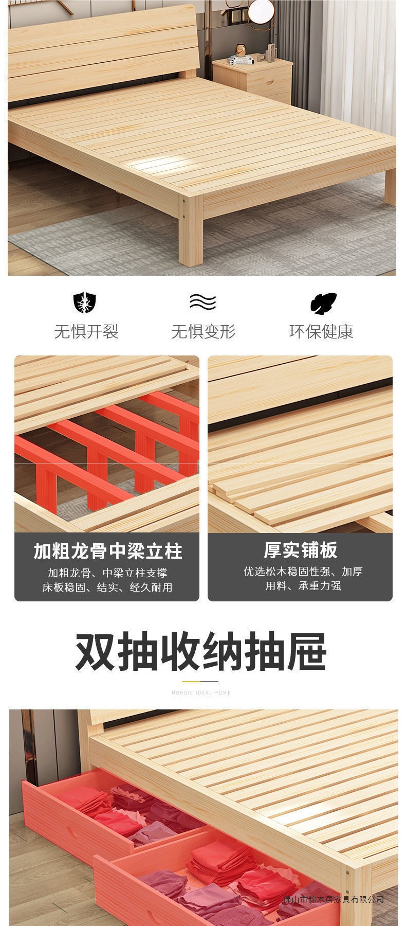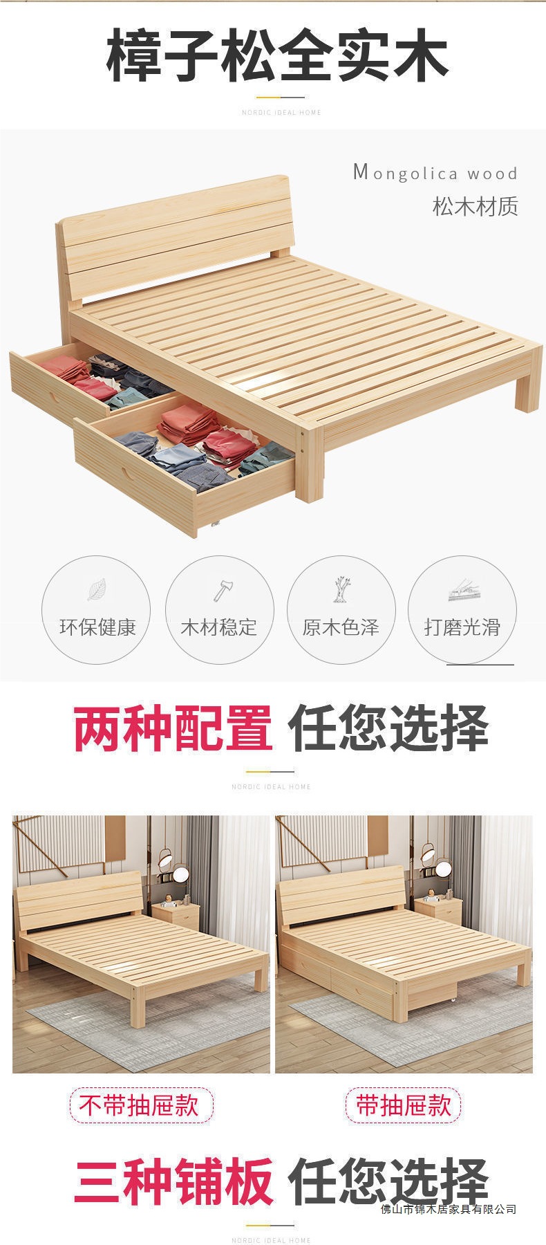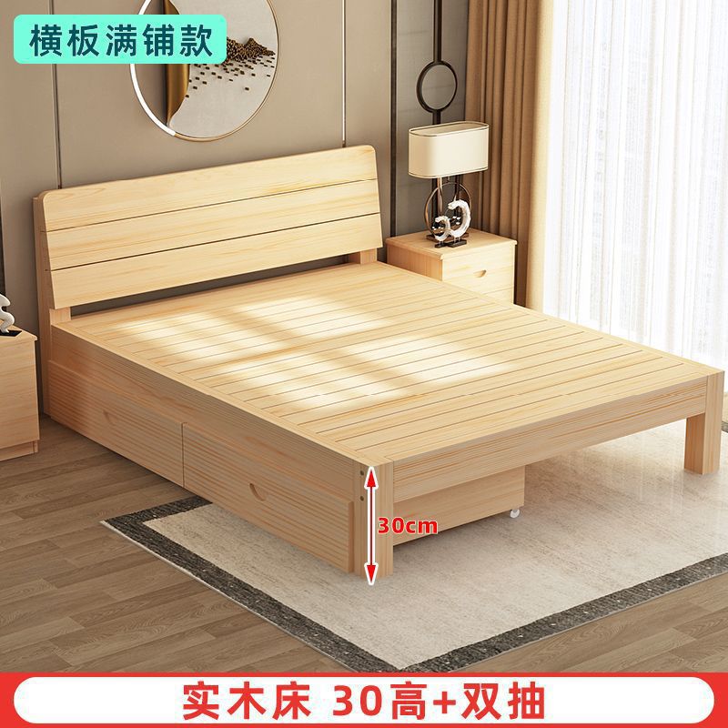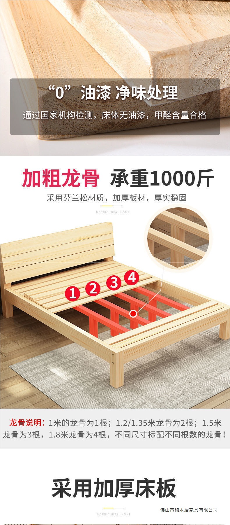 두꺼운 원목 침대, 심플 모던 더블 침대, 경제적인 싱글 침대, 홈 마스터 침실 임대용 원목 침대