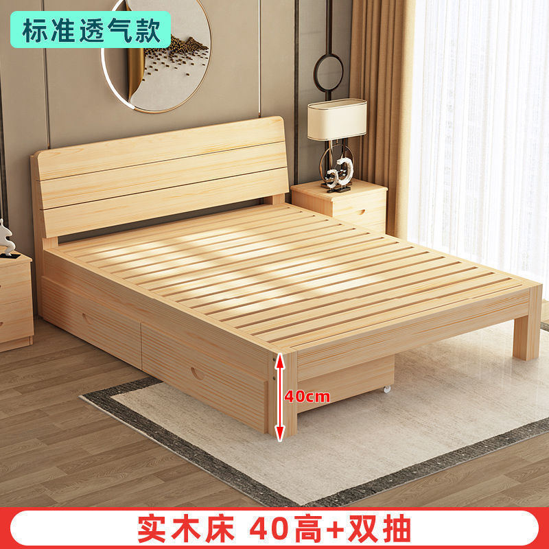 • [표준 통기성 모델] 원목 침대 높이 40 + 더블 서랍