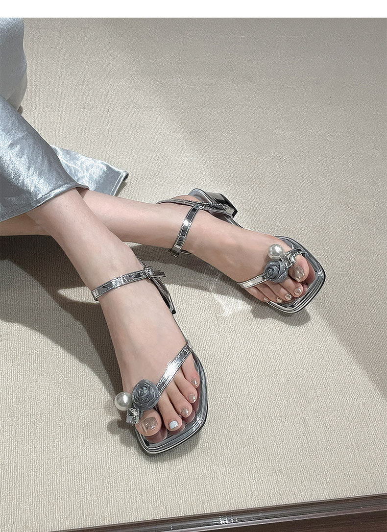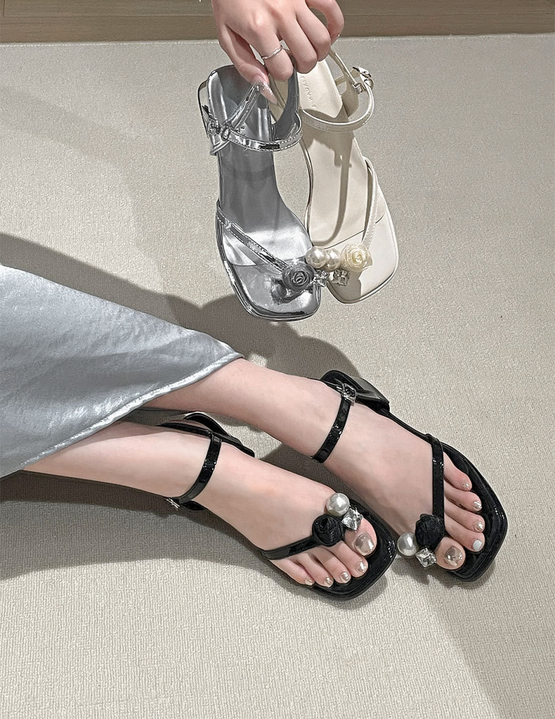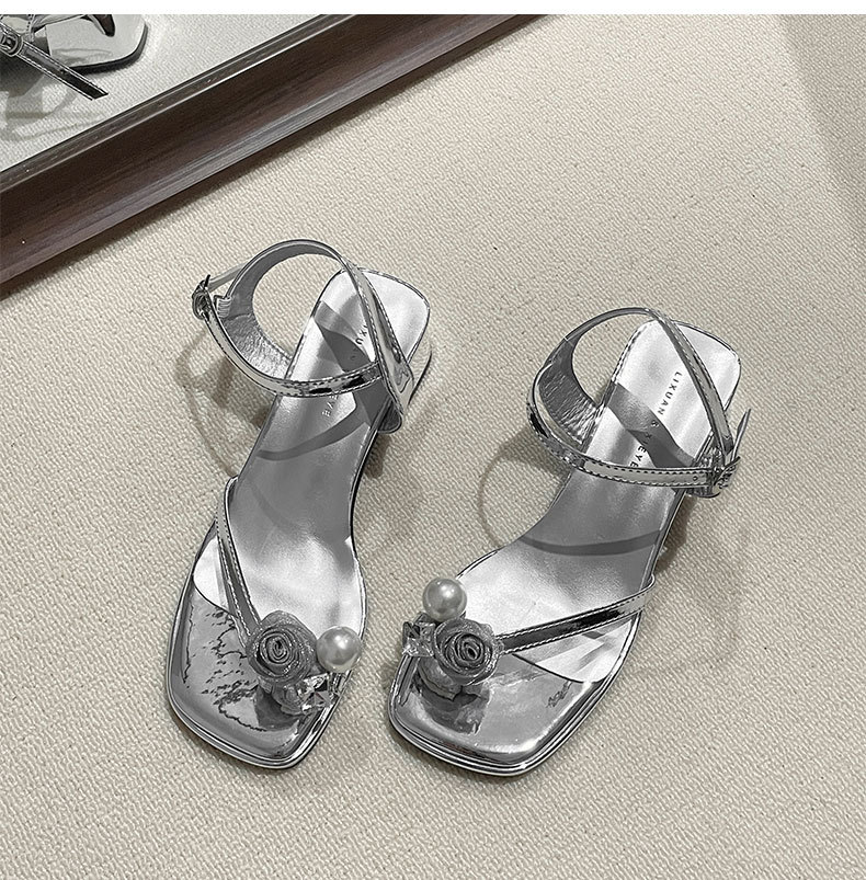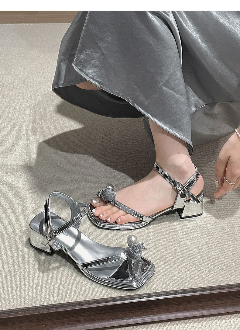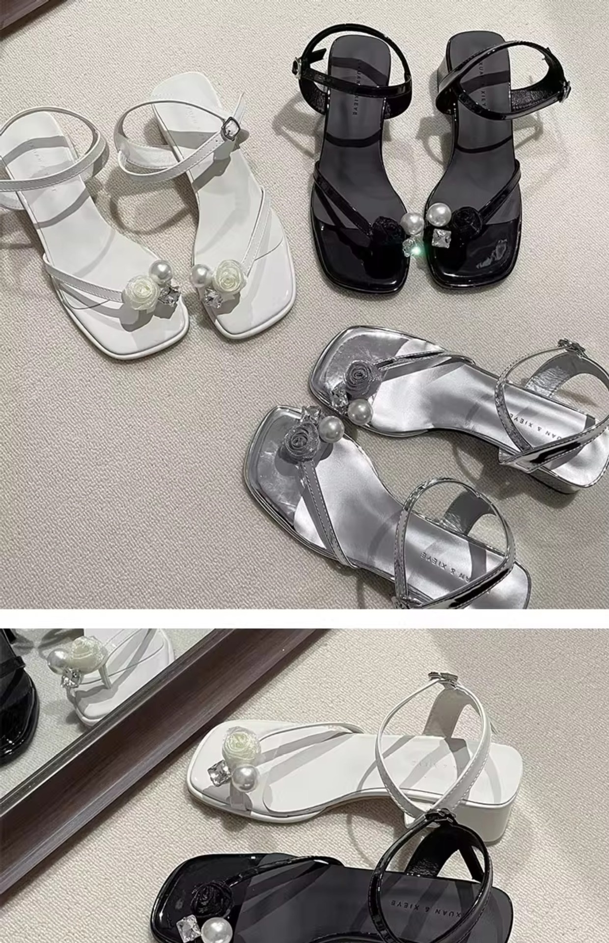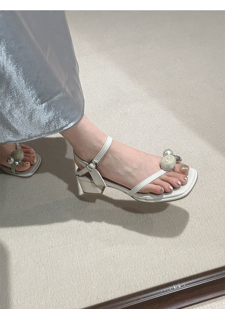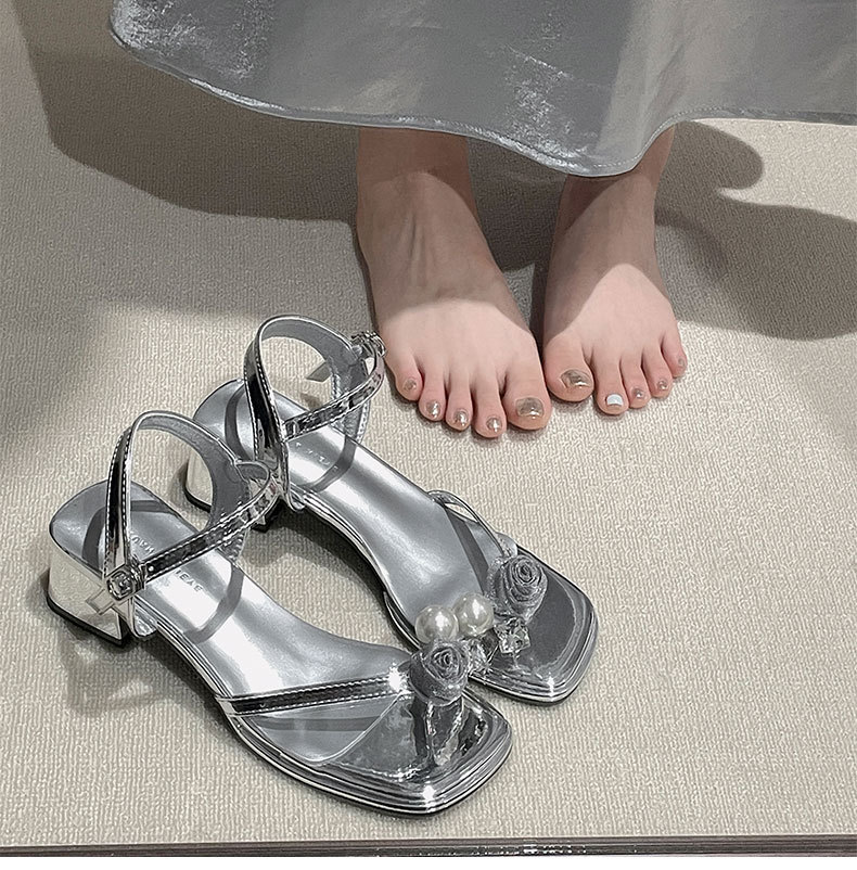 여성을위한 인기있는 흰색 복고풍 두꺼운 굽 슬립 온 샌들 2025 스커트가있는 새로운 여름 겉옷 미끄럼 방지 프렌치 샌들스토어 가기
