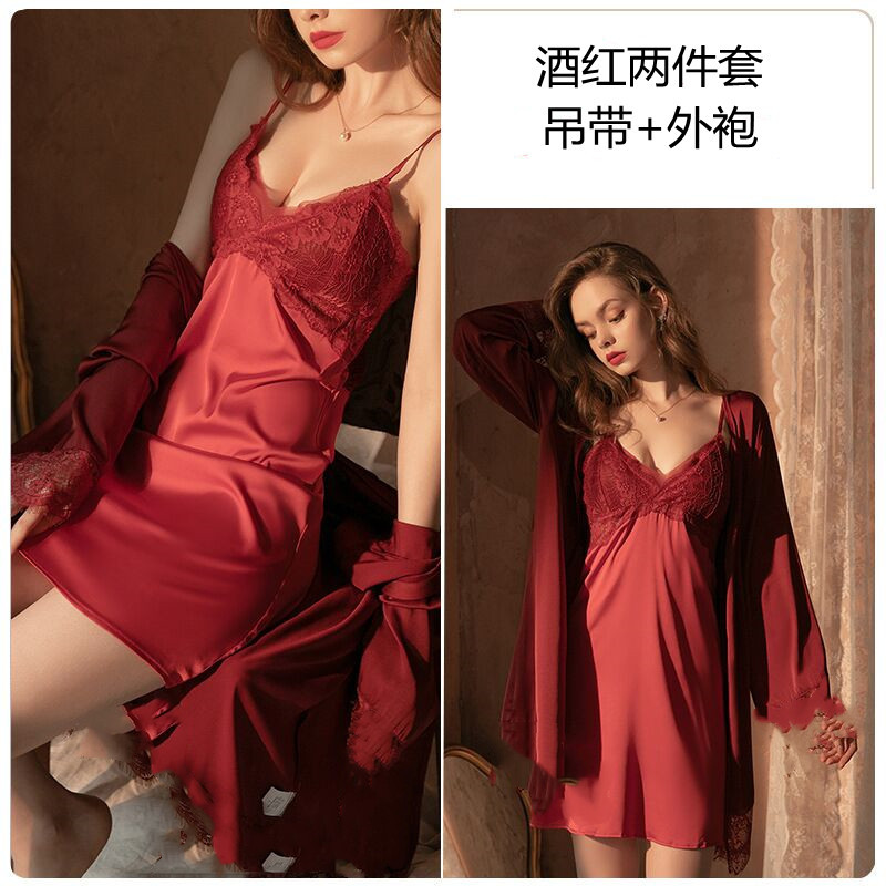 • 버건디(잠옷+가운) - 가슴 패드 포함