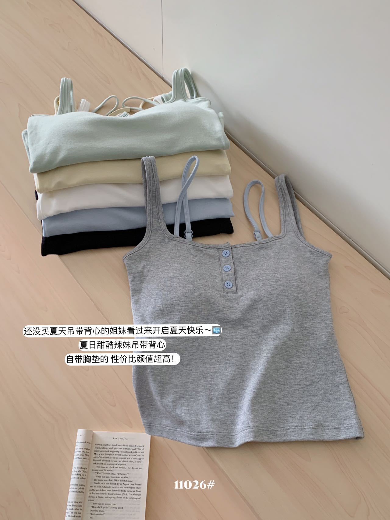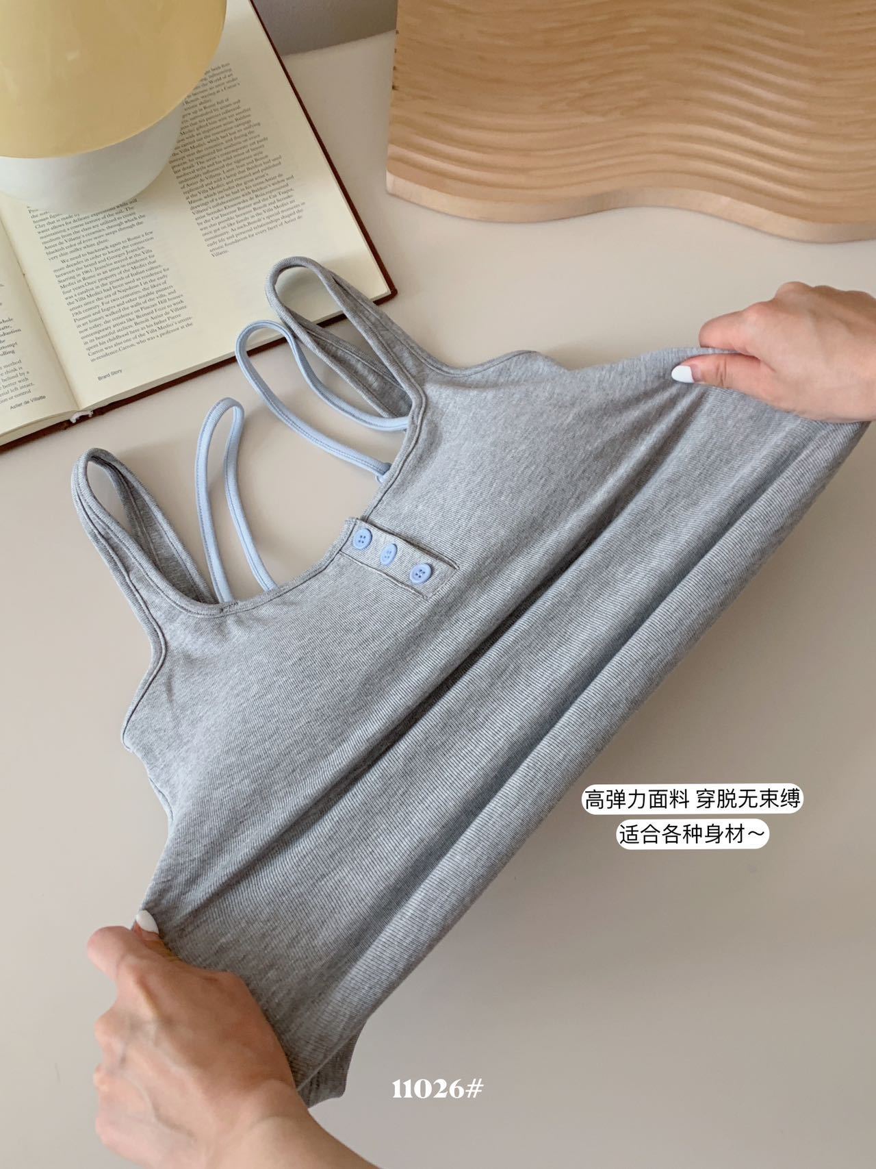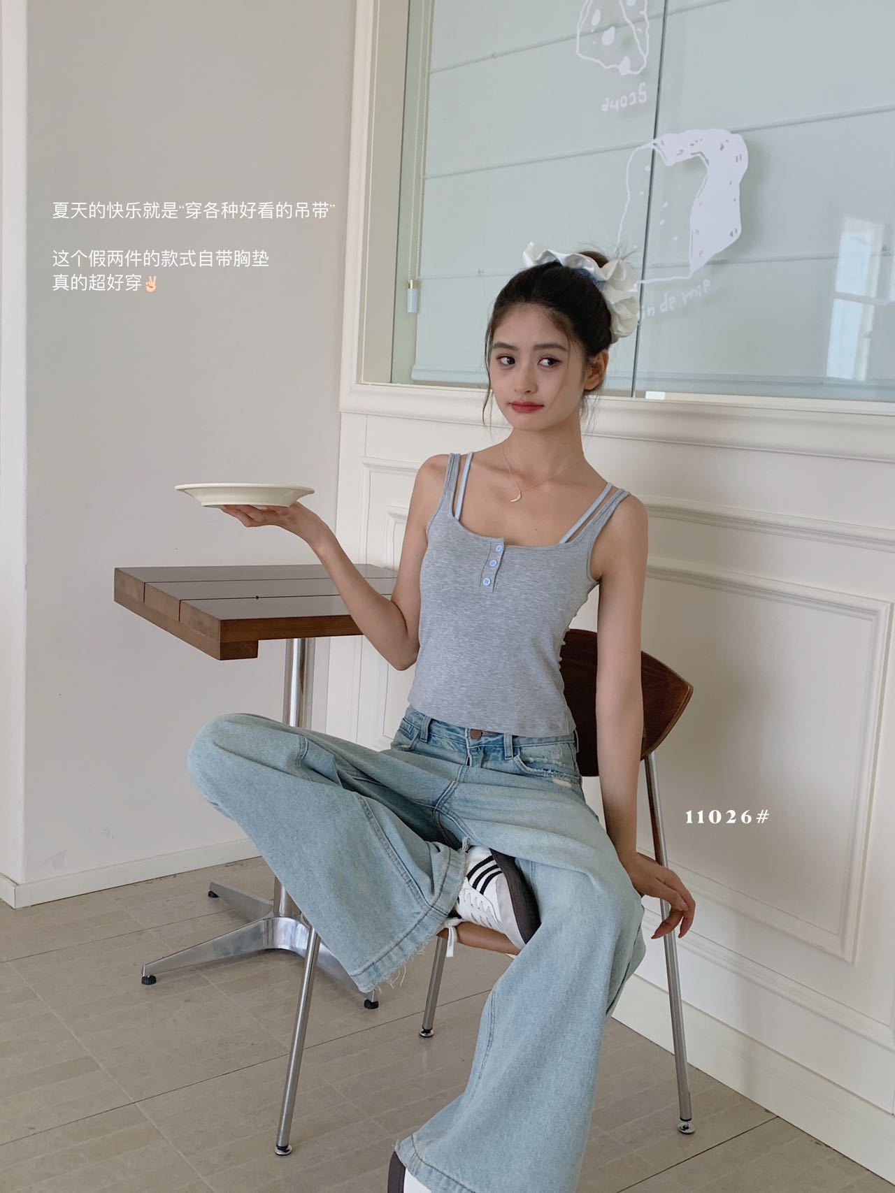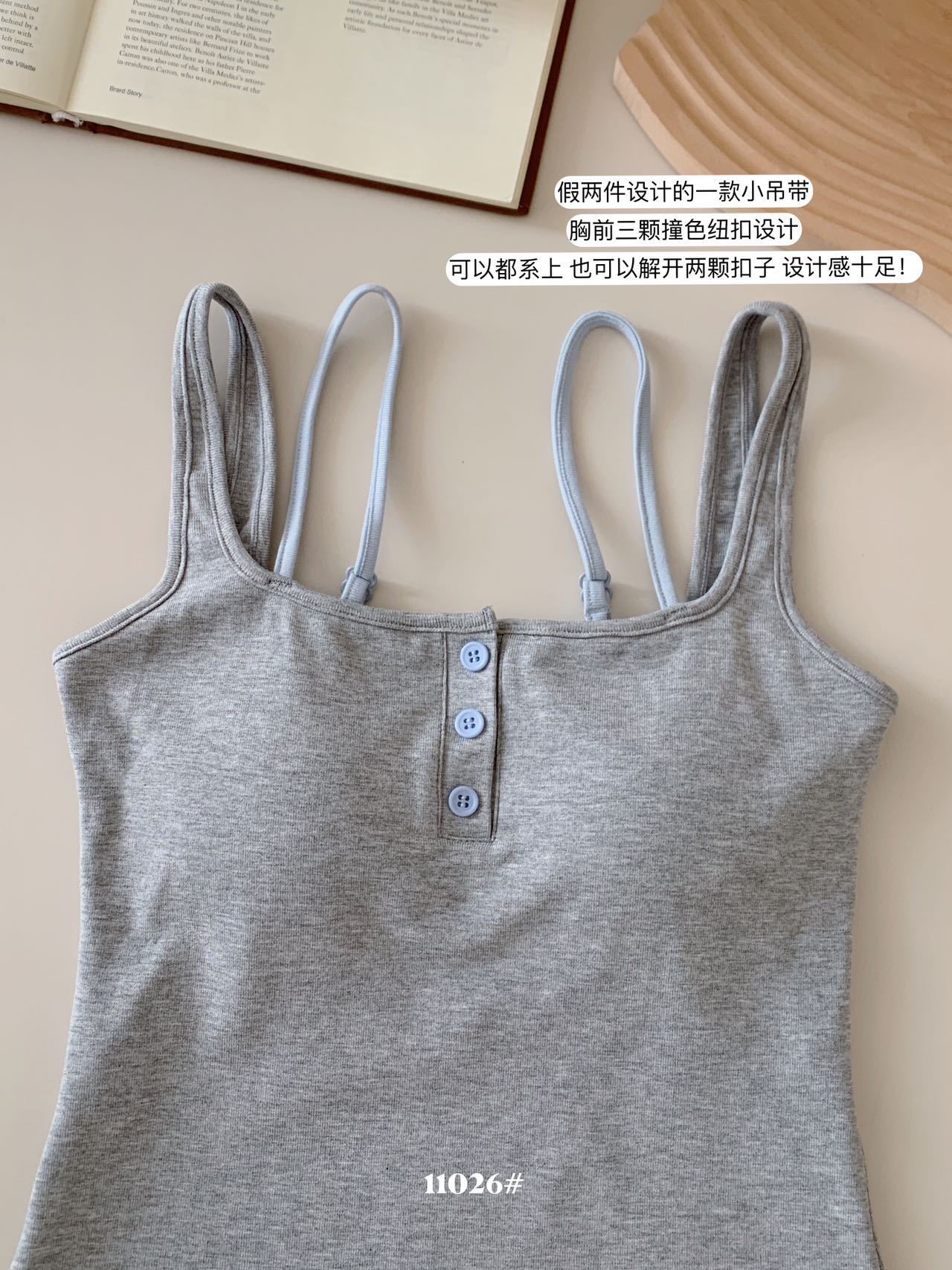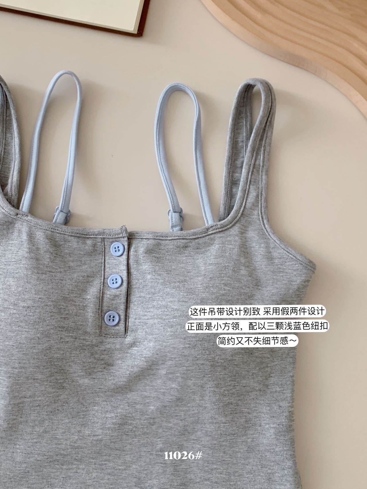 11026 가짜 투피스 캐미솔 고정 가슴 패드 달콤하고 매운 레이스 중공 아름다운 등 슬림핏 다용도 민소매 탑