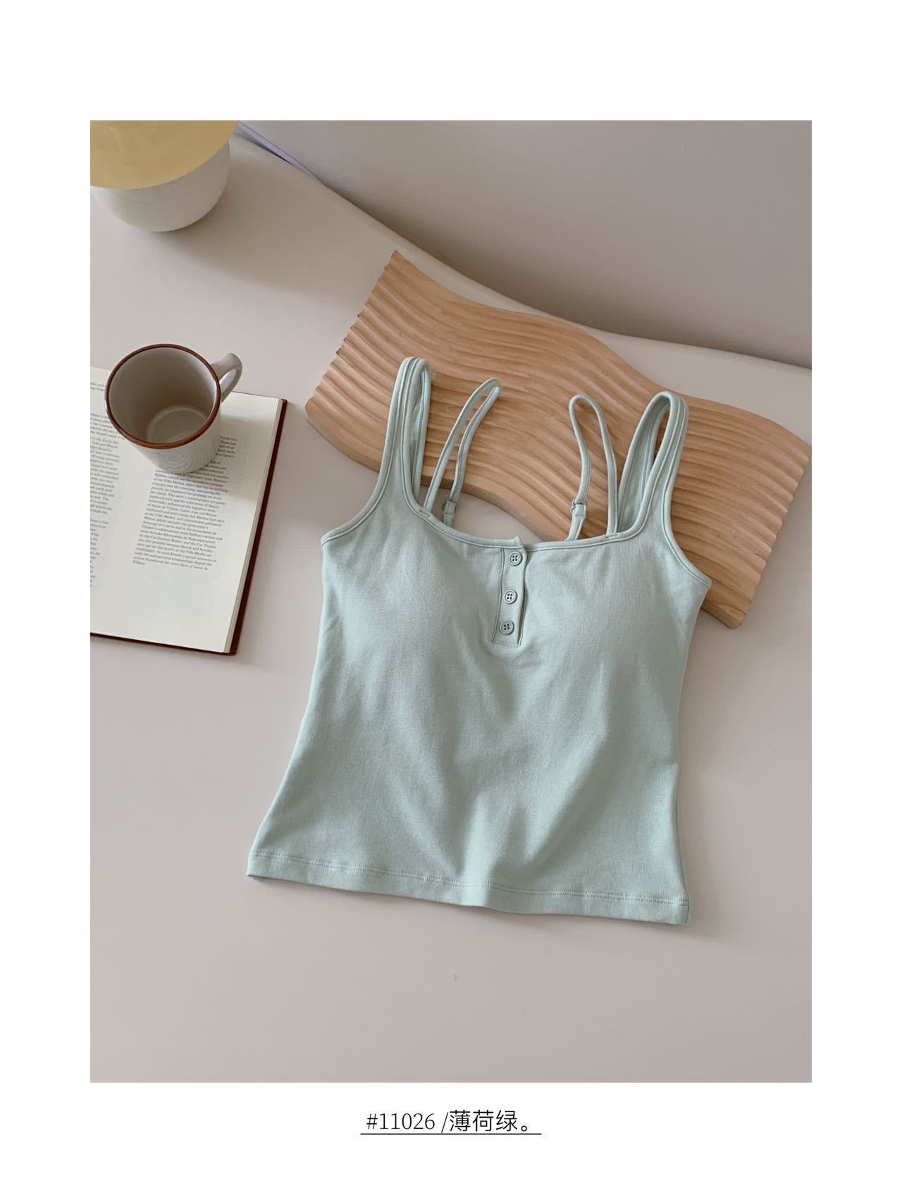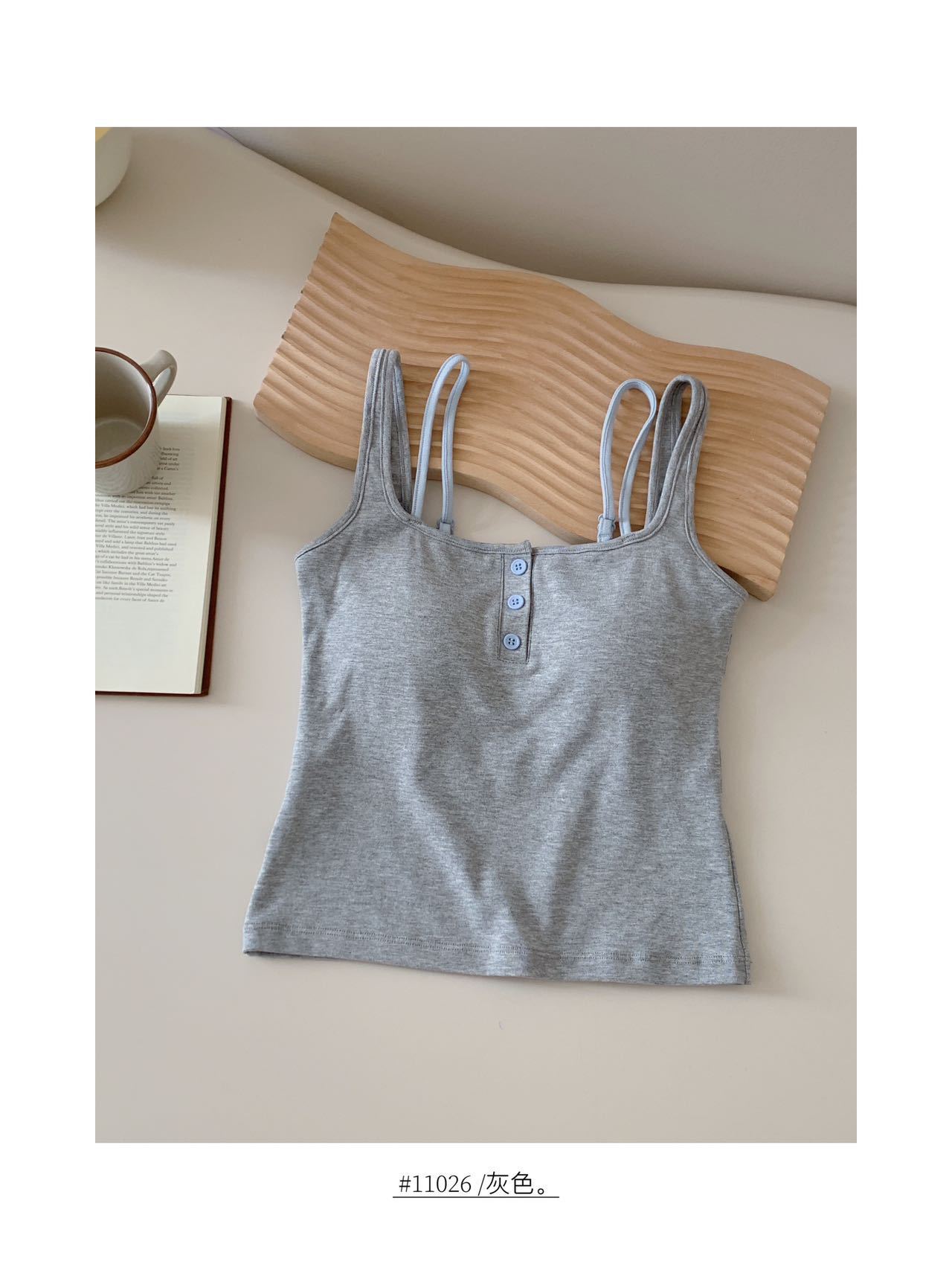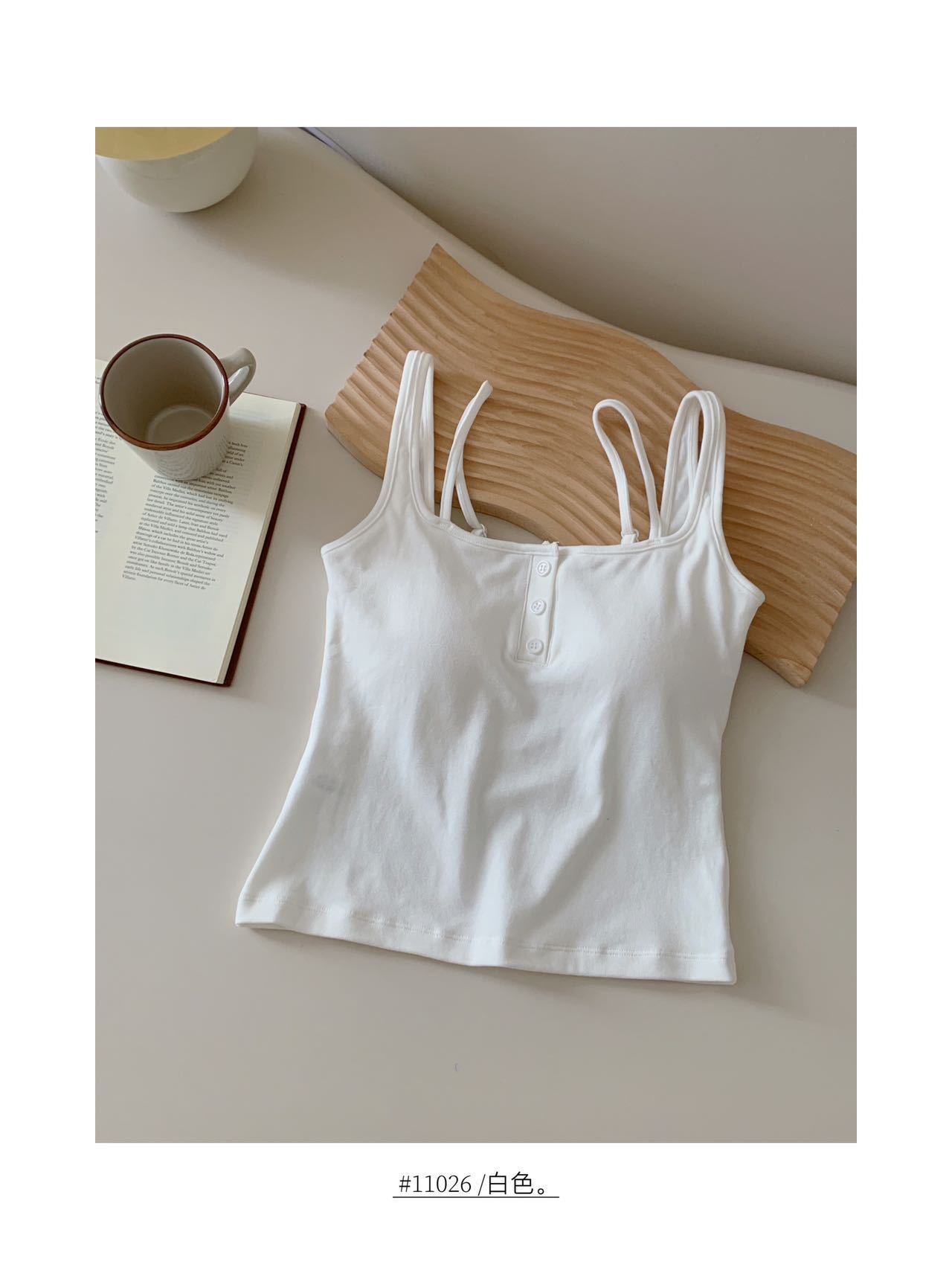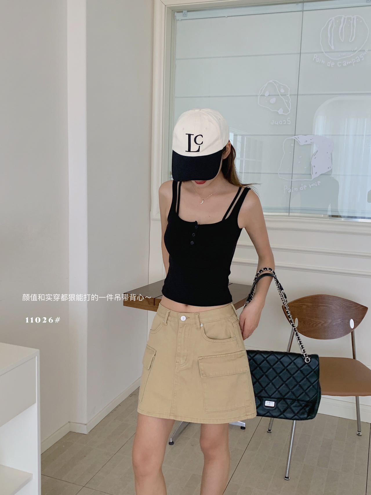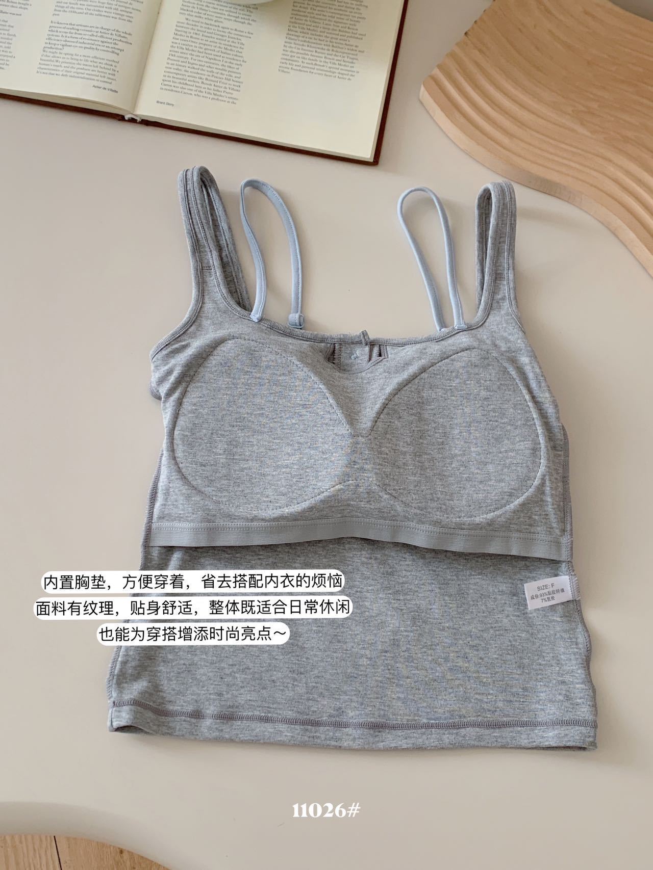 11026 가짜 투피스 캐미솔 고정 가슴 패드 달콤하고 매운 레이스 중공 아름다운 등 슬림핏 다용도 민소매 탑