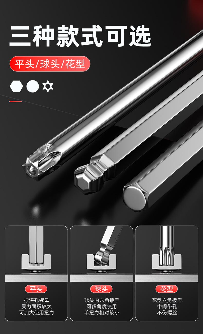 소스 팩토리 T형 육각 렌치 S2 확장 매화 플랫 헤드 볼 헤드 육각 드라이버 더블 헤드 렌치