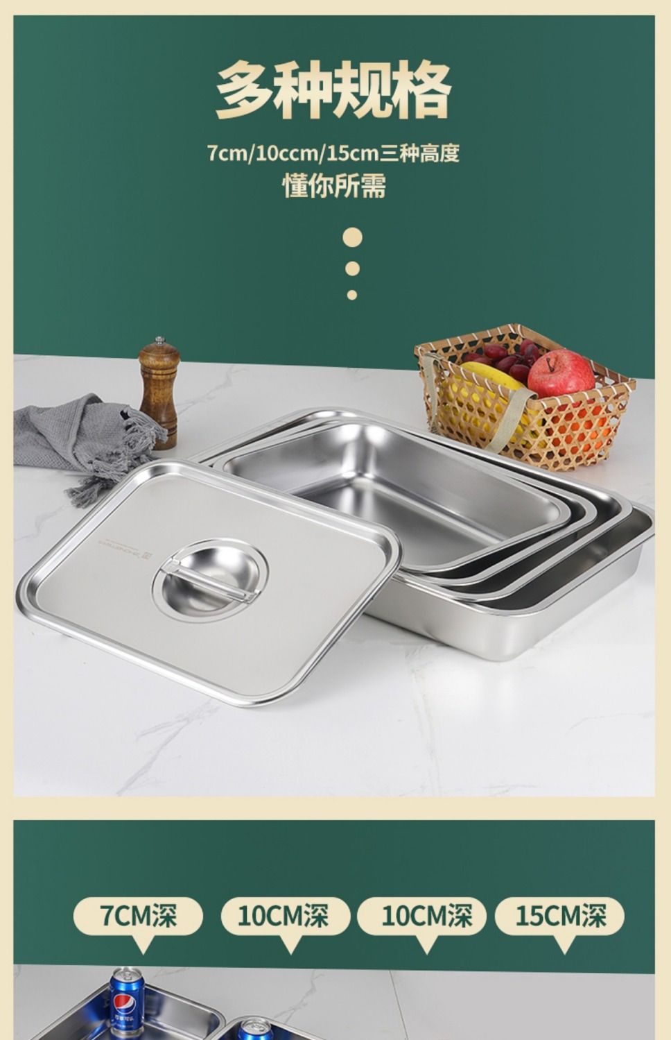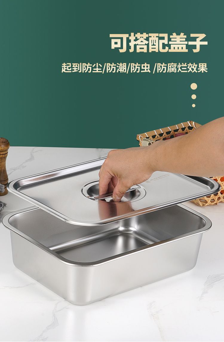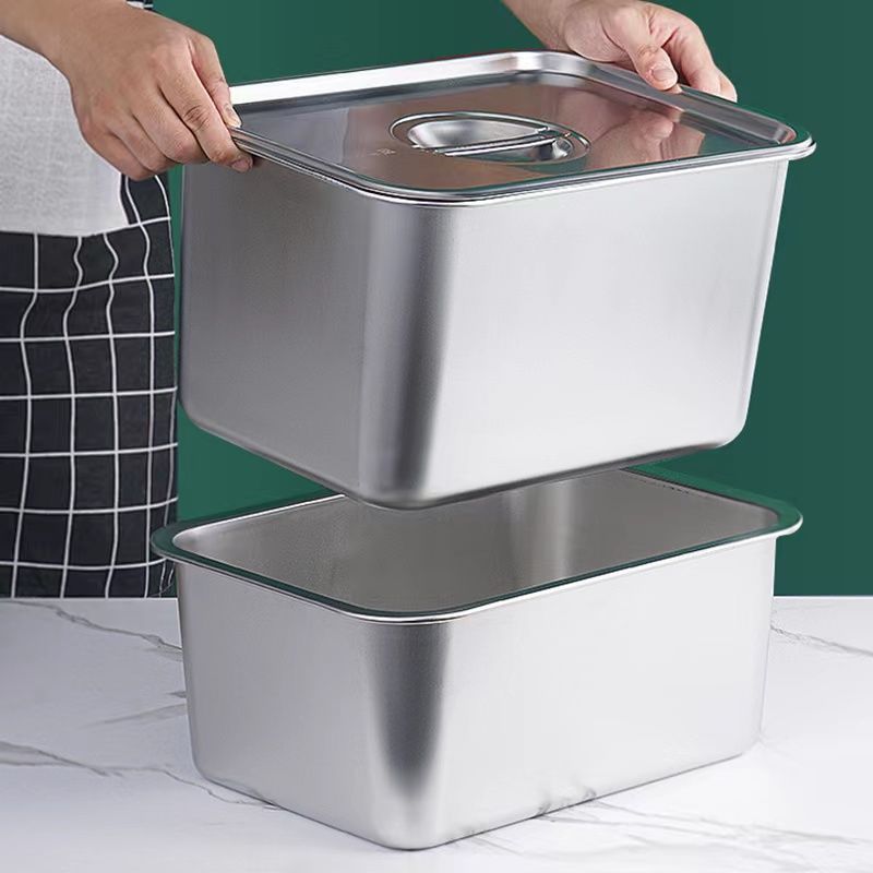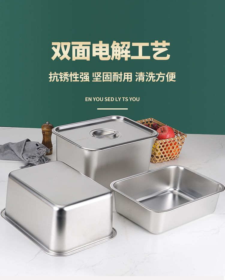 스테인레스 스틸 사각형 그릇, 직사각형 사각형 접시, 뷔페 그릇, 깊은 트레이, 뚜껑이 있는 패스트 푸드 그릇, 사각형 상자스토어 가기