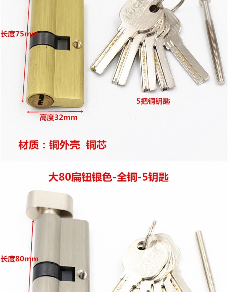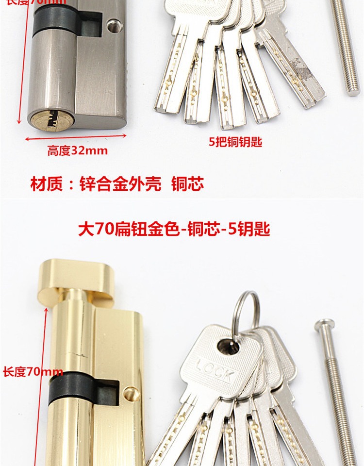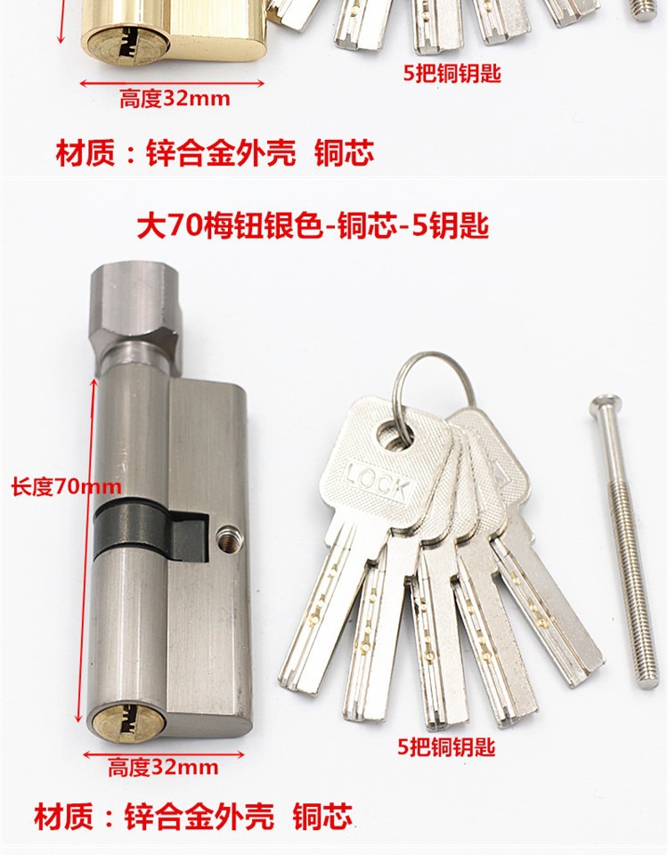 • 빅 70 메뉴 실버-구리 코어-5 키-35-50mm-유니버설 유형-키 포함