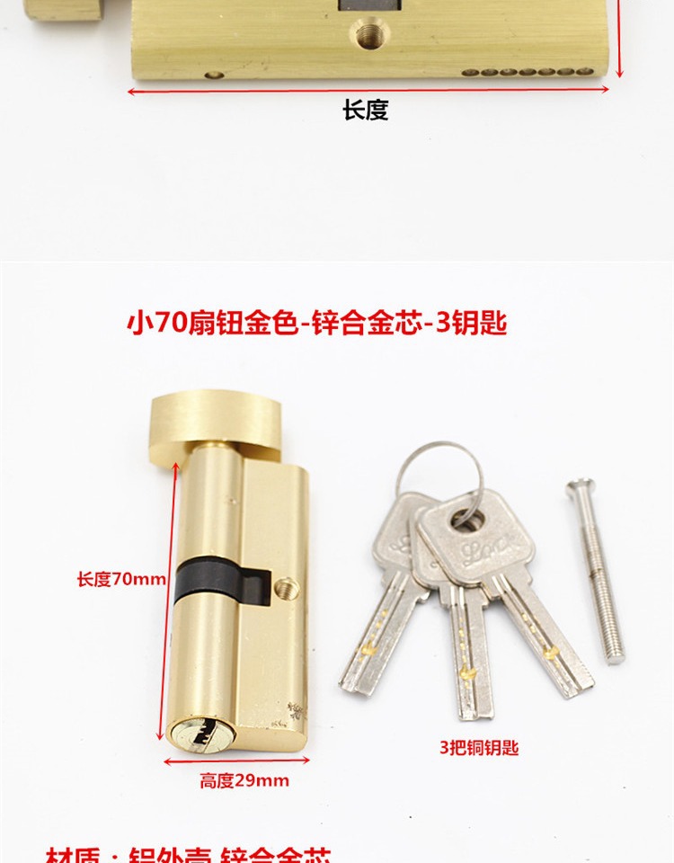 • 소형 70 플랫 버튼 금-구리 코어-3 키-35-50mm-범용 유형-키 포함