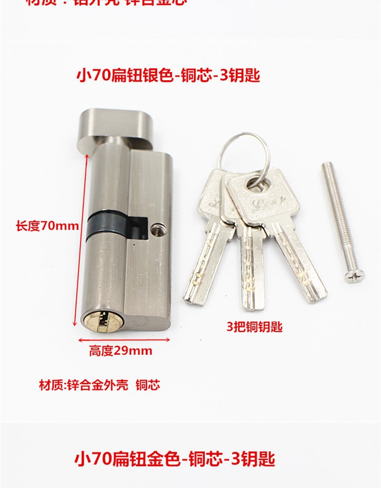 • 소형 70 플랫 버튼 은-구리 코어-3 키-35-50mm-범용 유형-키 포함