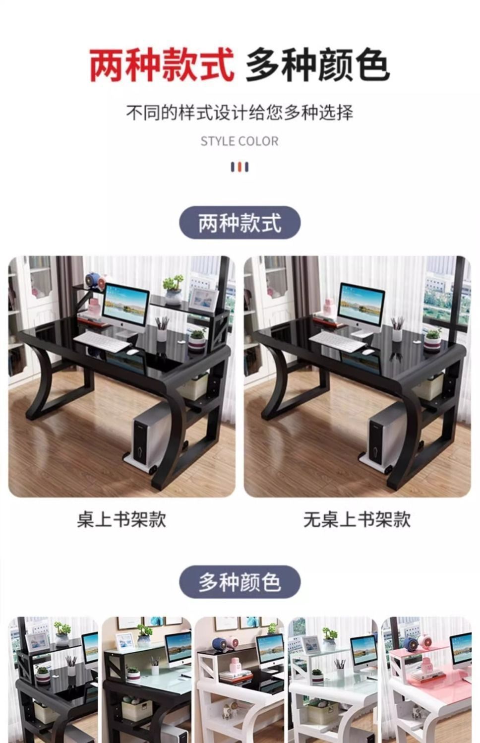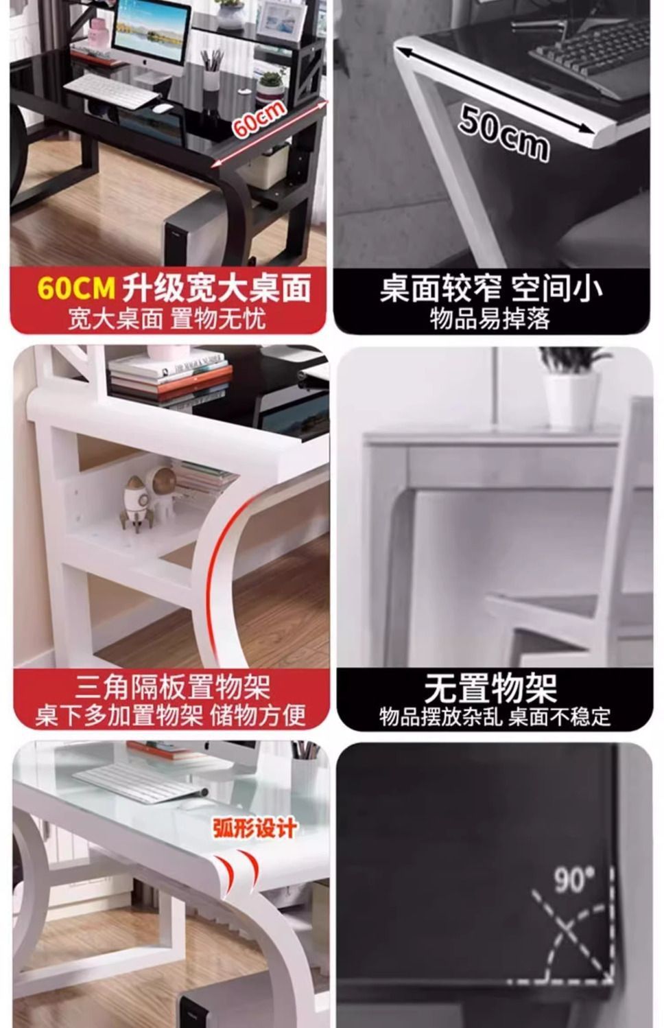 Zhoushi의 새로운 컴퓨터 책상, 사무실 책상, 가정용 데스크탑, 소형 아파트 침실용 일체형 곡선형 심플 책상, e스포츠 책상스토어 가기