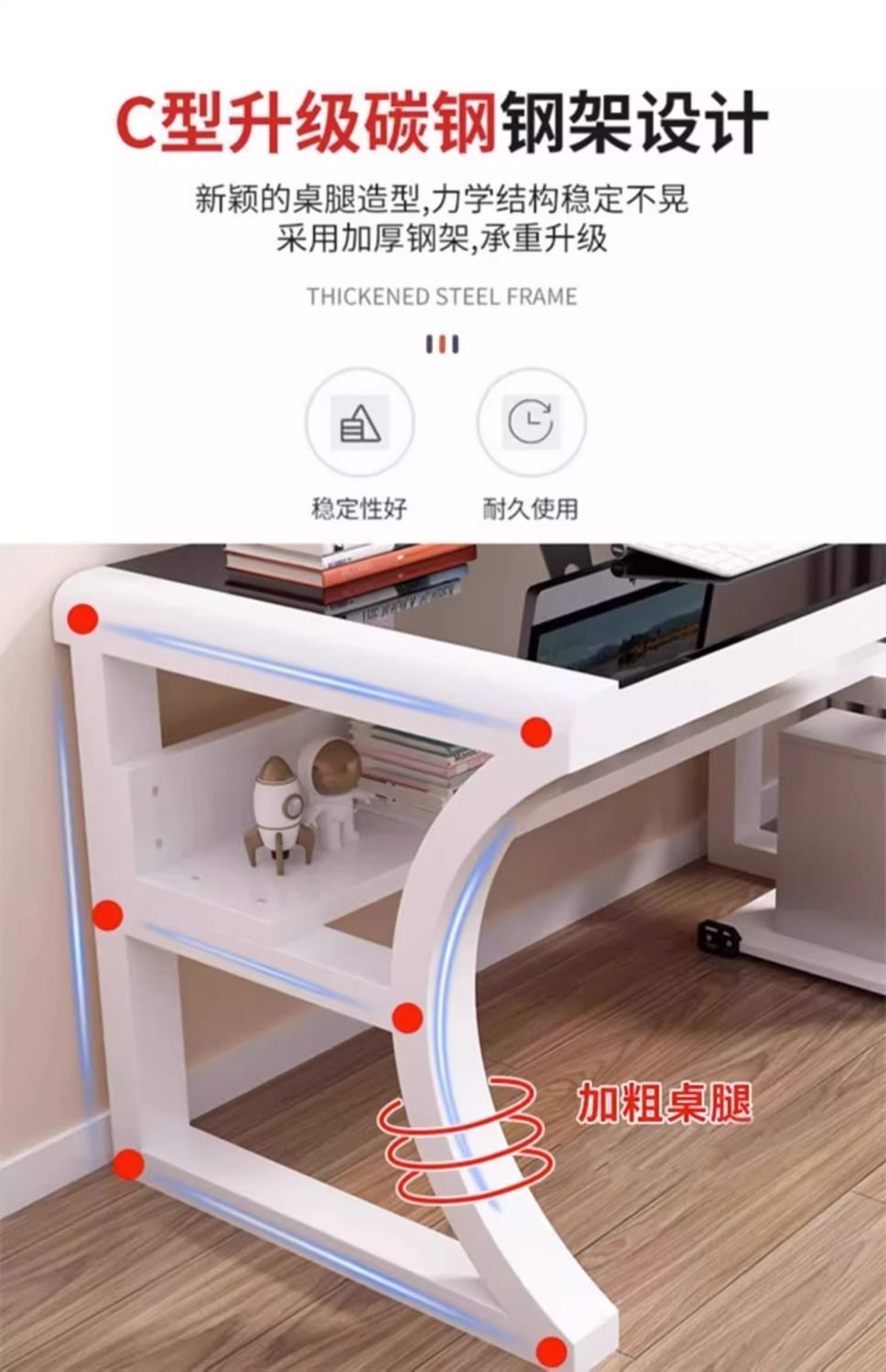 • 화이트 스틸 프레임 + 화이트/[3C 인증 강화유리]