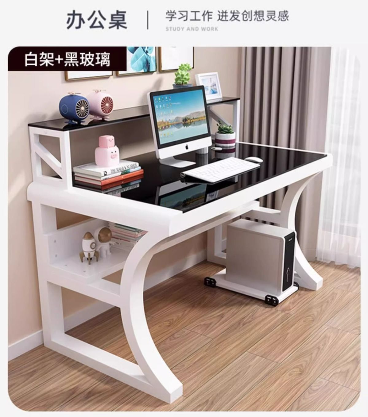 • 화이트 스틸 프레임 + 블랙/[3C 인증 강화유리]