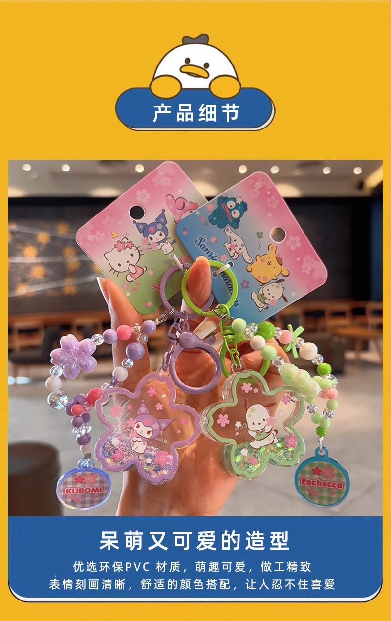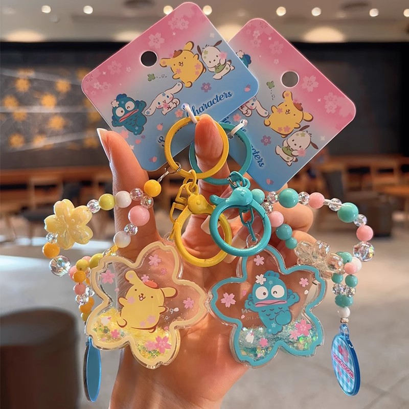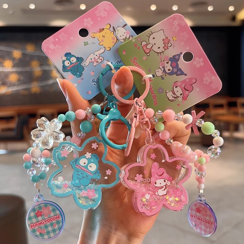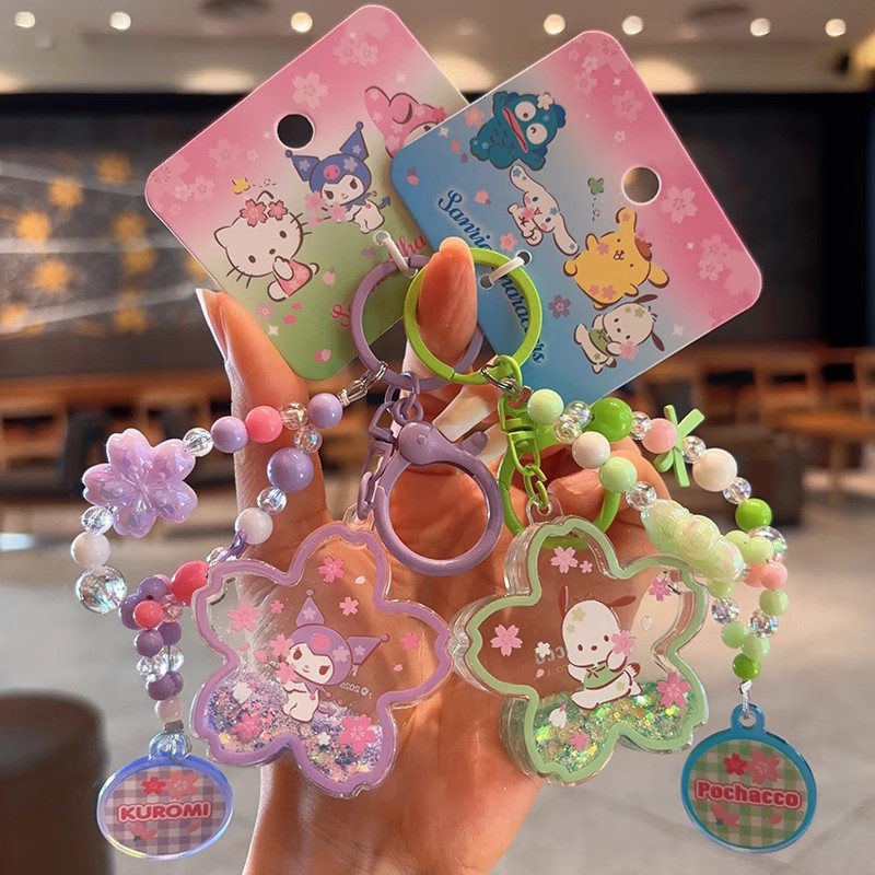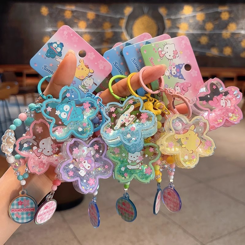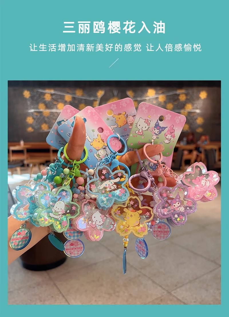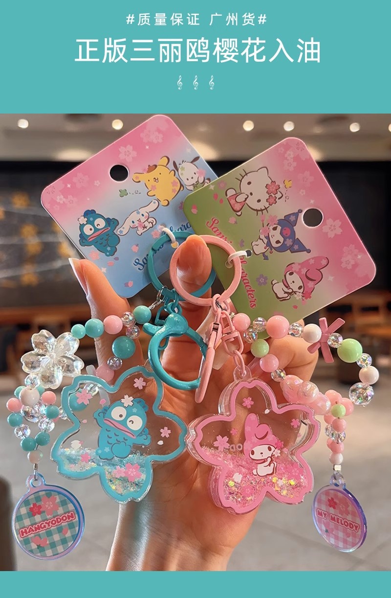 정품 산리오 패밀리 벚꽃 오일 가방 펜던트 자동차 키 체인 유사 펜던트 일본 귀여운 소녀 하트스토어 가기