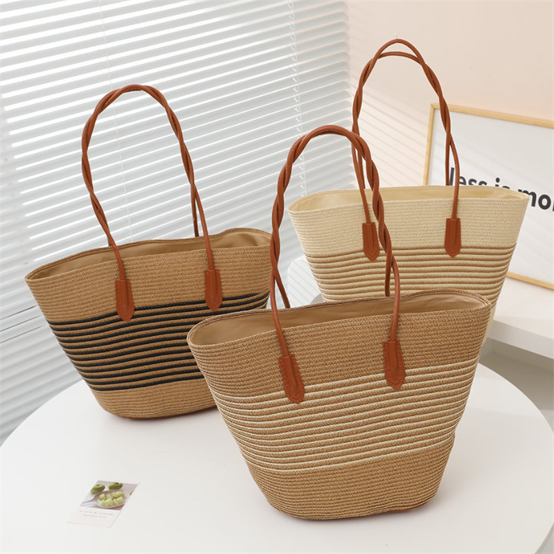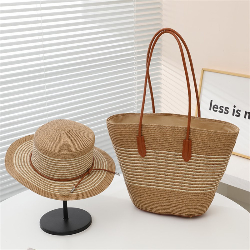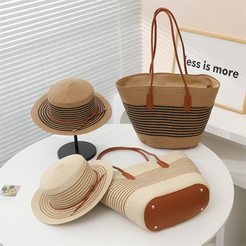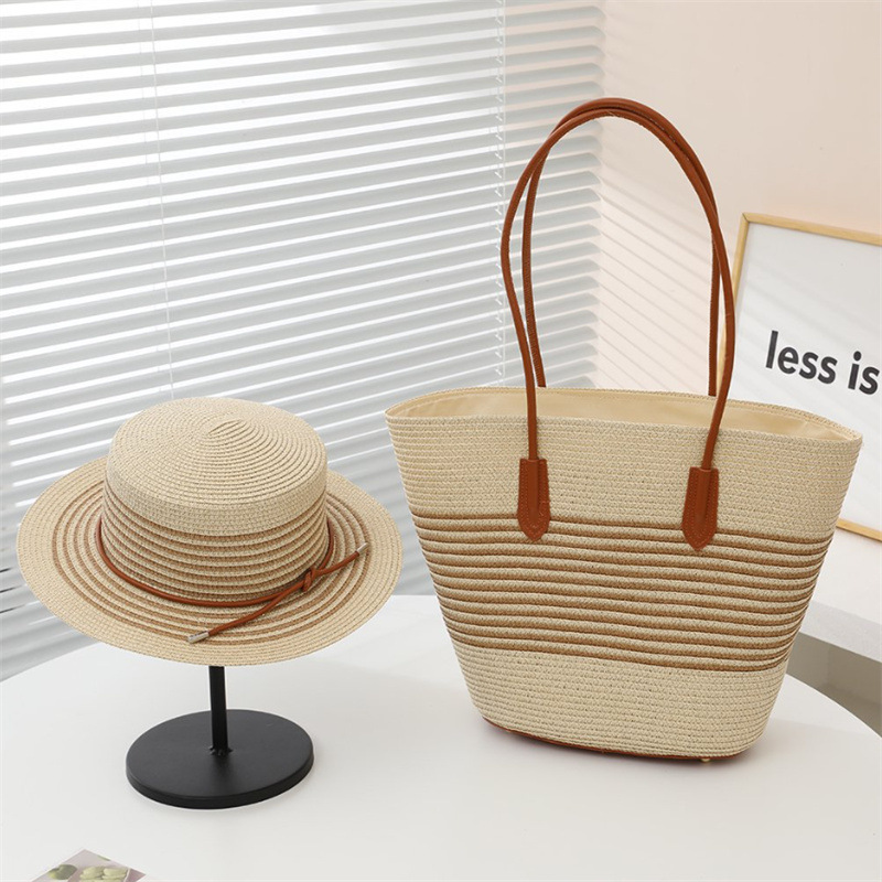 여성을위한 프랑스 복고풍 플랫 탑 밀짚 모자 여름 해변 휴가 해변 태양 모자 밀짚 태양 모자 숄더 백