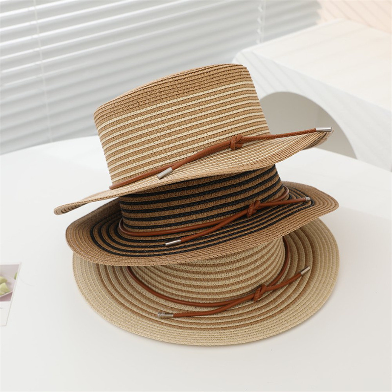 여성을위한 프랑스 복고풍 플랫 탑 밀짚 모자 여름 해변 휴가 해변 태양 모자 밀짚 태양 모자 숄더 백스토어 가기