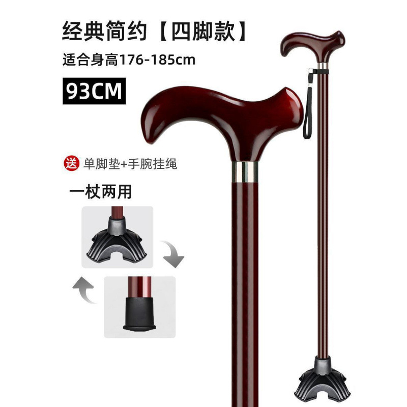 노인용 지팡이, 원목 4발 미끄럼 방지 지팡이, 노인용 경량 지팡이, 수도꼭지, 손잡이, 지팡이, 손잡이, 단일 발스토어 가기