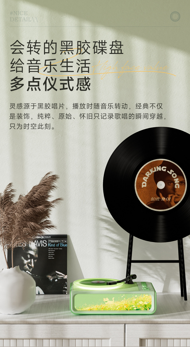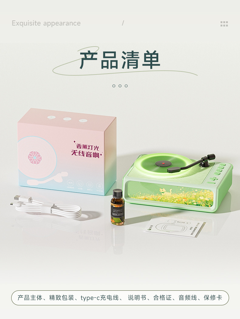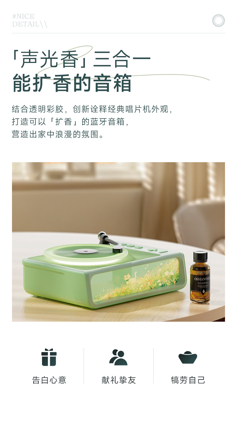 블루투스 스피커 분위기 조명 레트로 바이닐 레코드 창의적인 아로마테라피 테이블 램프 소녀 어린이 크리스마스 새해 선물 세트