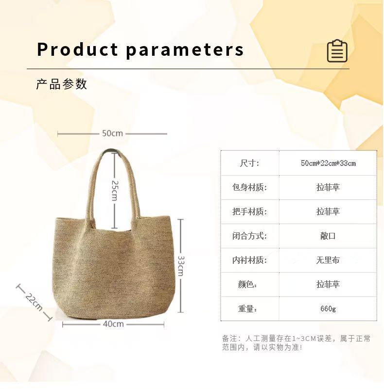 고급스러운 라피아 밀짚 가방, 핸드메이드 가방, 해변 휴가용 대용량 토트백, 여성용 숄더 비치백