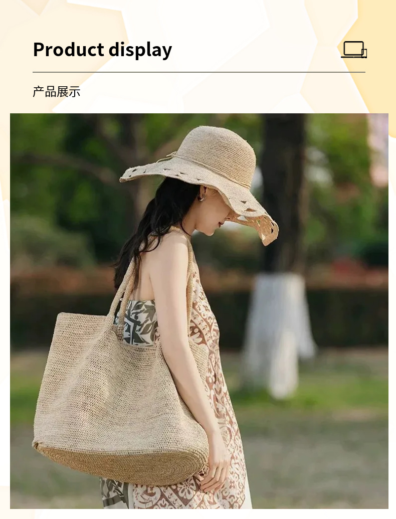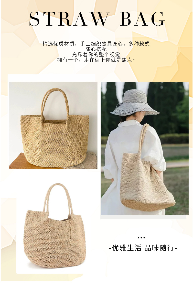 고급스러운 라피아 밀짚 가방, 핸드메이드 가방, 해변 휴가용 대용량 토트백, 여성용 숄더 비치백스토어 가기