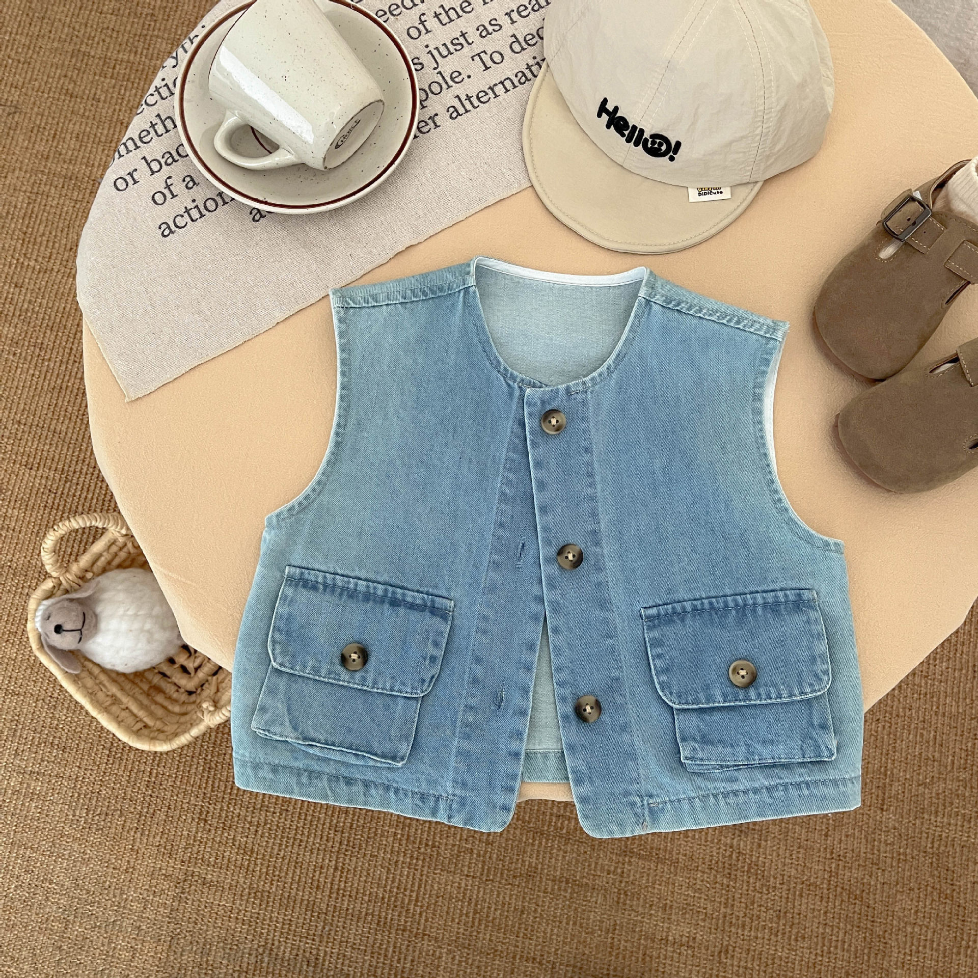 어린이 데님 조끼 소년 봄, 가을 겉옷 2025 새로운 아기 조끼 어린이 가을 복고풍 소년 조끼스토어 가기
