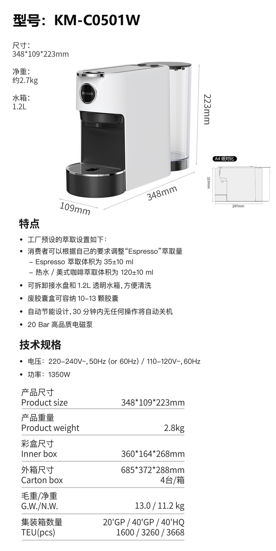 네스프레스 시스템, 가정용 커피 머신, 호텔 가정용으로 적용 가능한 원클릭 미국식 이탈리아 캡슐 커피 머신
