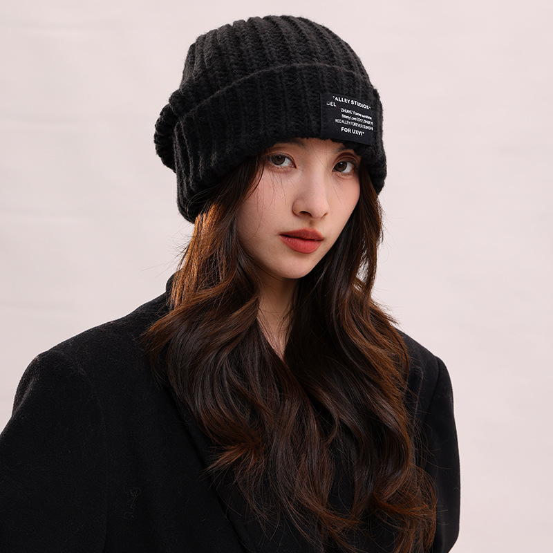 65CM 대형 머리 둘레 남성용 모직 모자 겨울 검정색 플러시 모직 모자 여성용 대형 니트 모자 두꺼운 니트 방한 모자스토어 가기