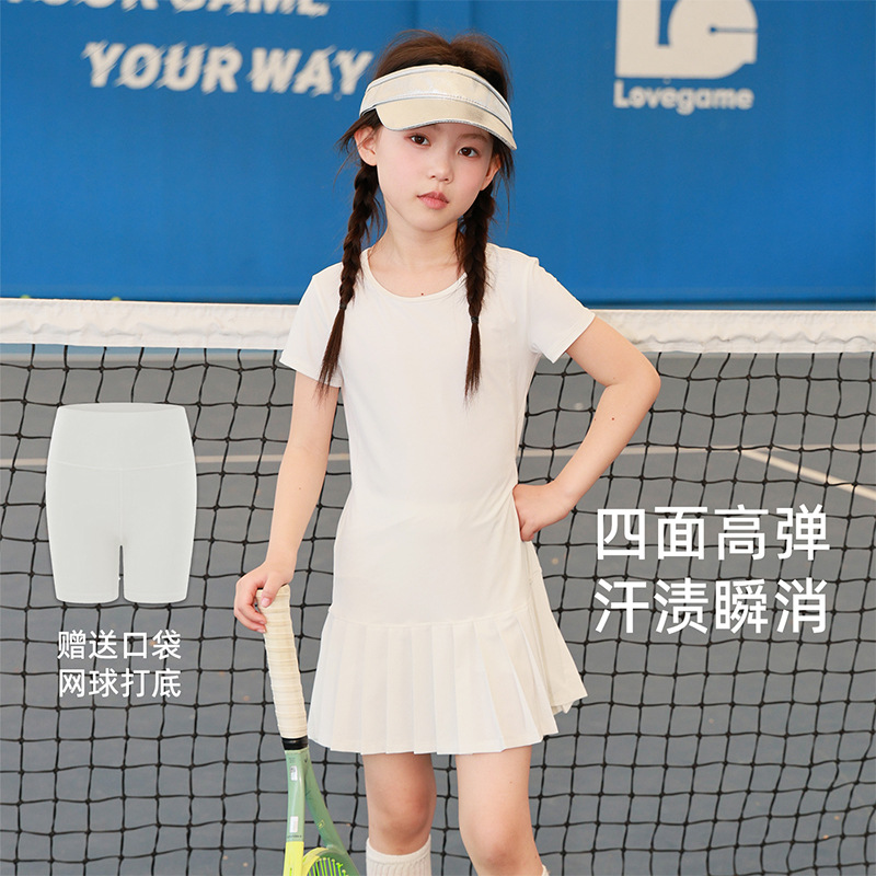 여자 태양 보호 테니스 스커트 드레스 2025 여름 새로운 어린이 패션 가벼운 탄성 시원한 스포츠 롱 스커트