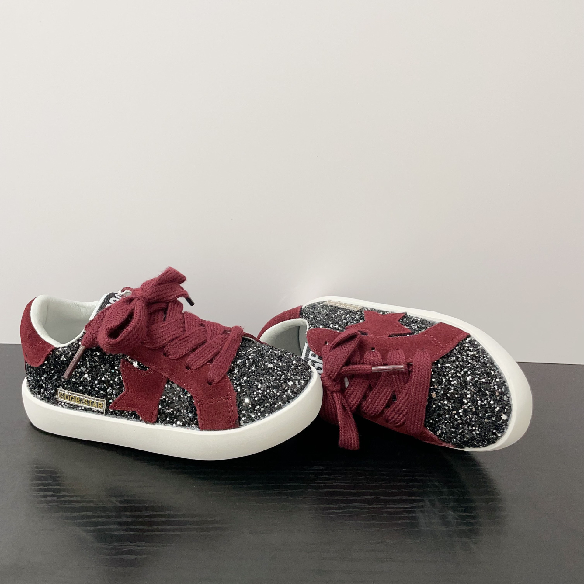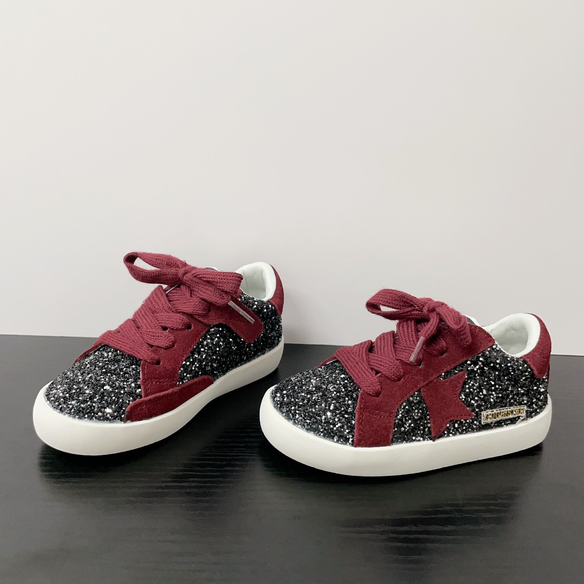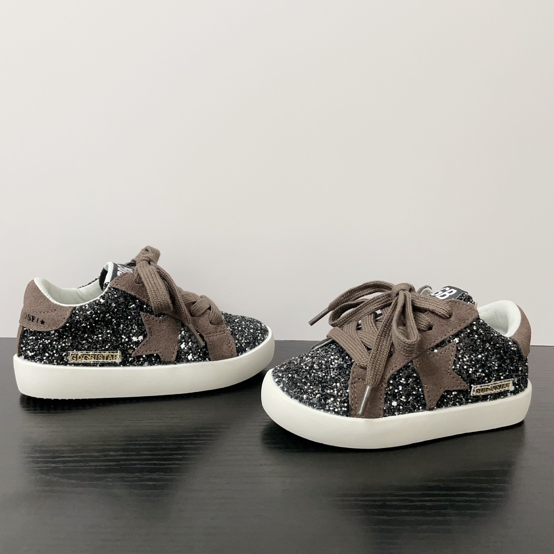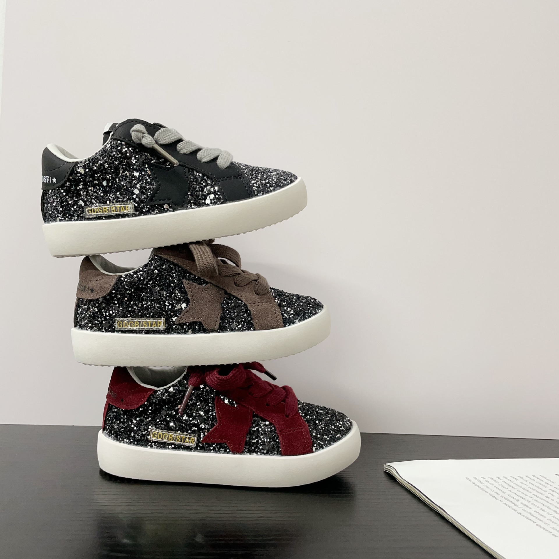 트렌디한 맞춤형 풀슈즈, 스팽글 장식, 한국식 삼색 오각별 스니커즈, 2025년 가을 남녀 신발스토어 가기