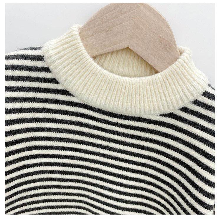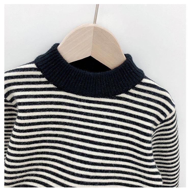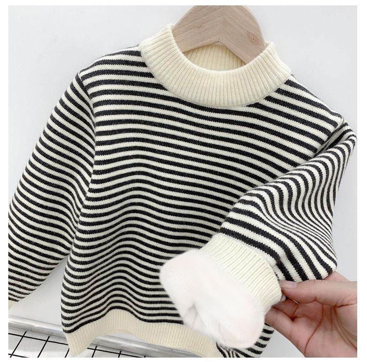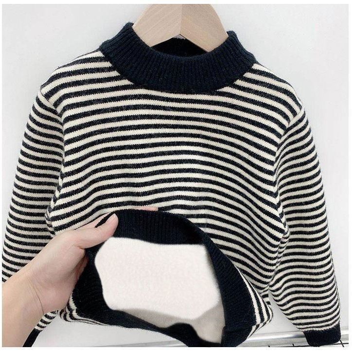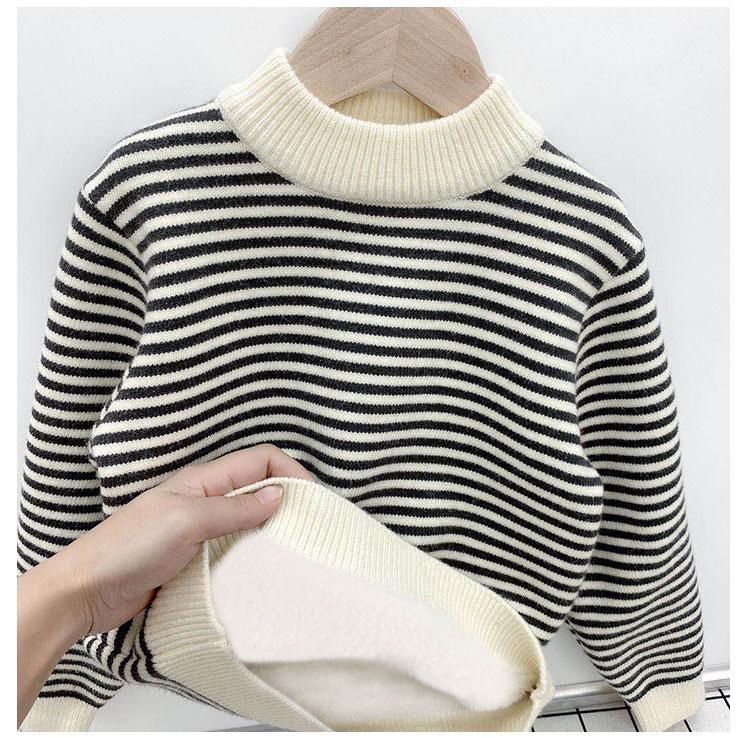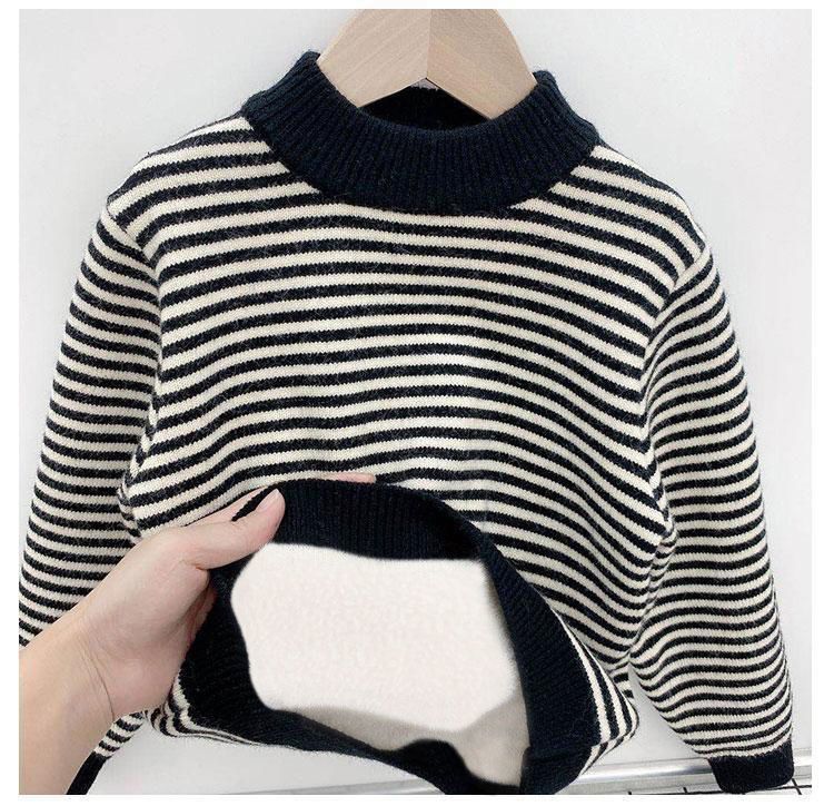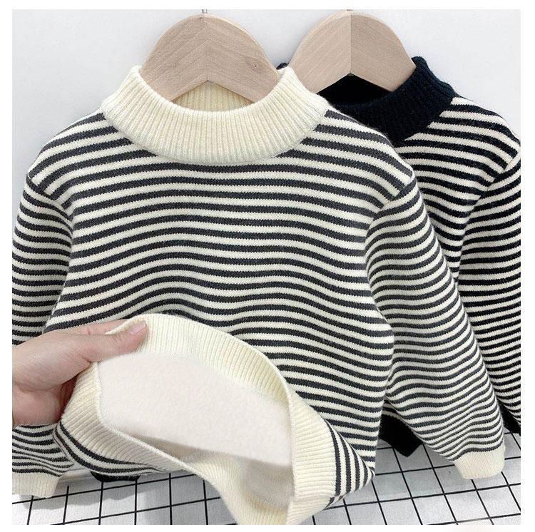 남아용 스웨터 풀오버 플러스 벨벳 가을 겨울 새로운 스타일 남아용 상의 아동용 원피스 벨벳 스트라이프 니트 바닥 셔츠