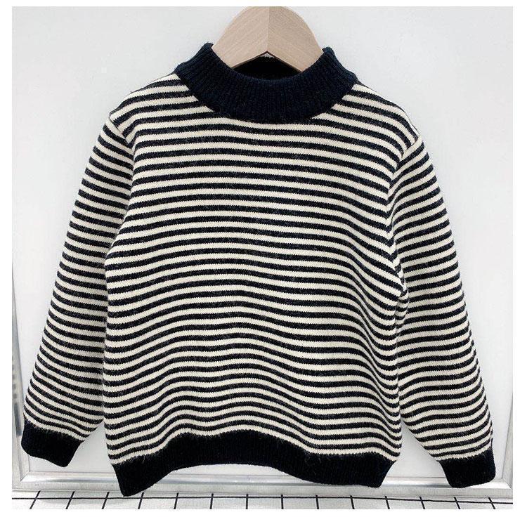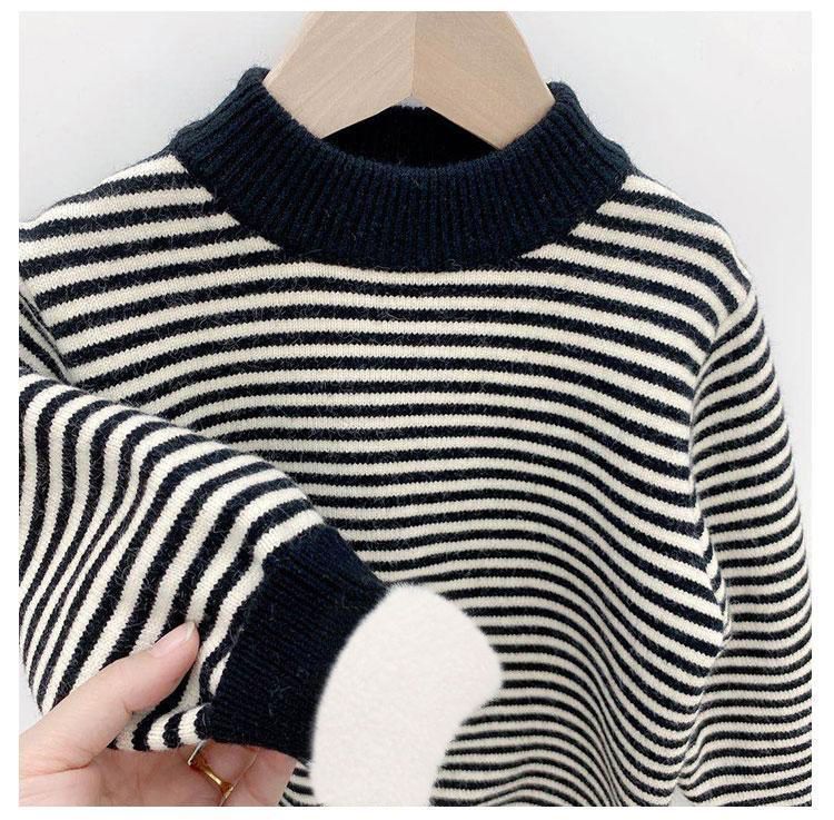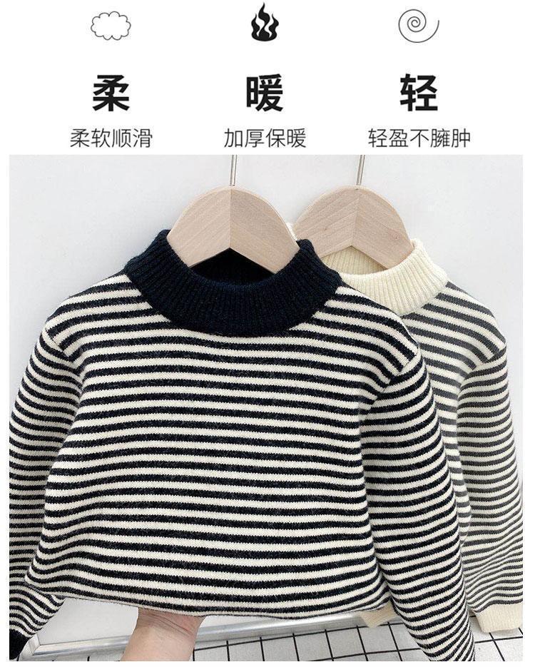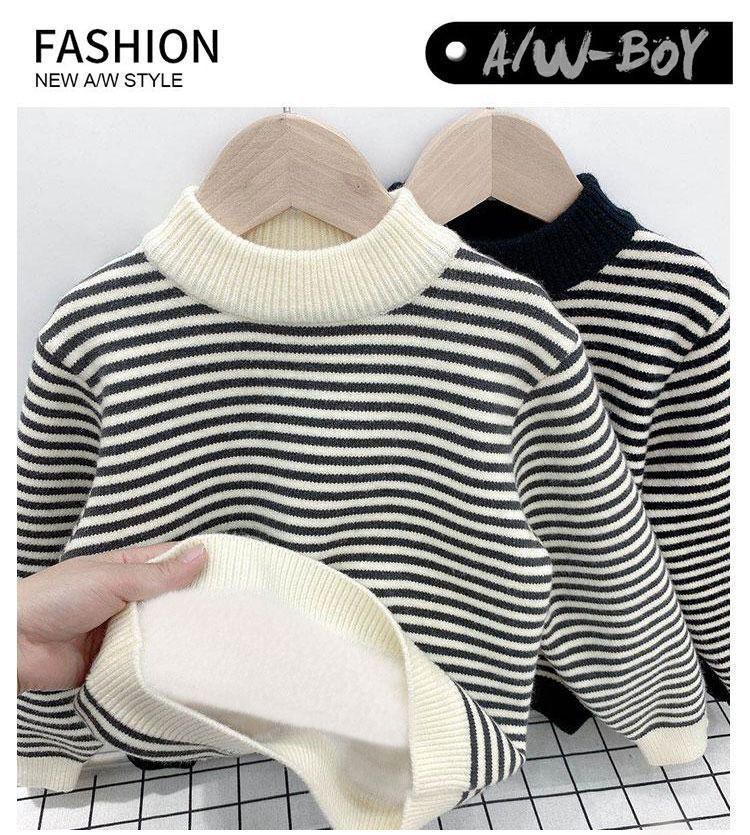 남아용 스웨터 풀오버 플러스 벨벳 가을 겨울 새로운 스타일 남아용 상의 아동용 원피스 벨벳 스트라이프 니트 바닥 셔츠스토어 가기