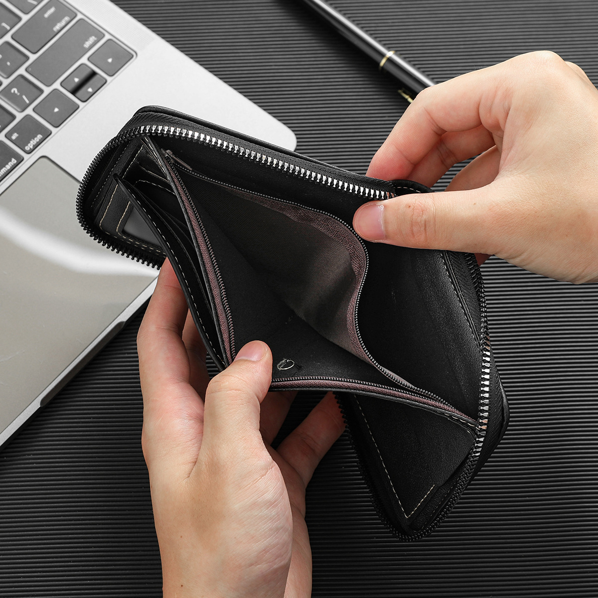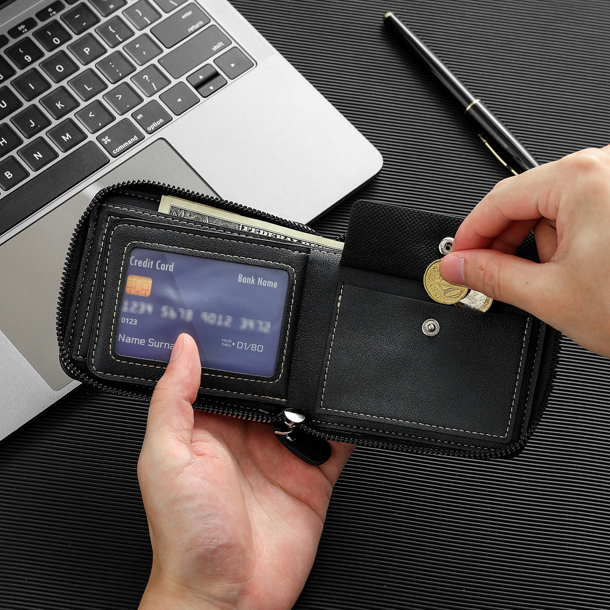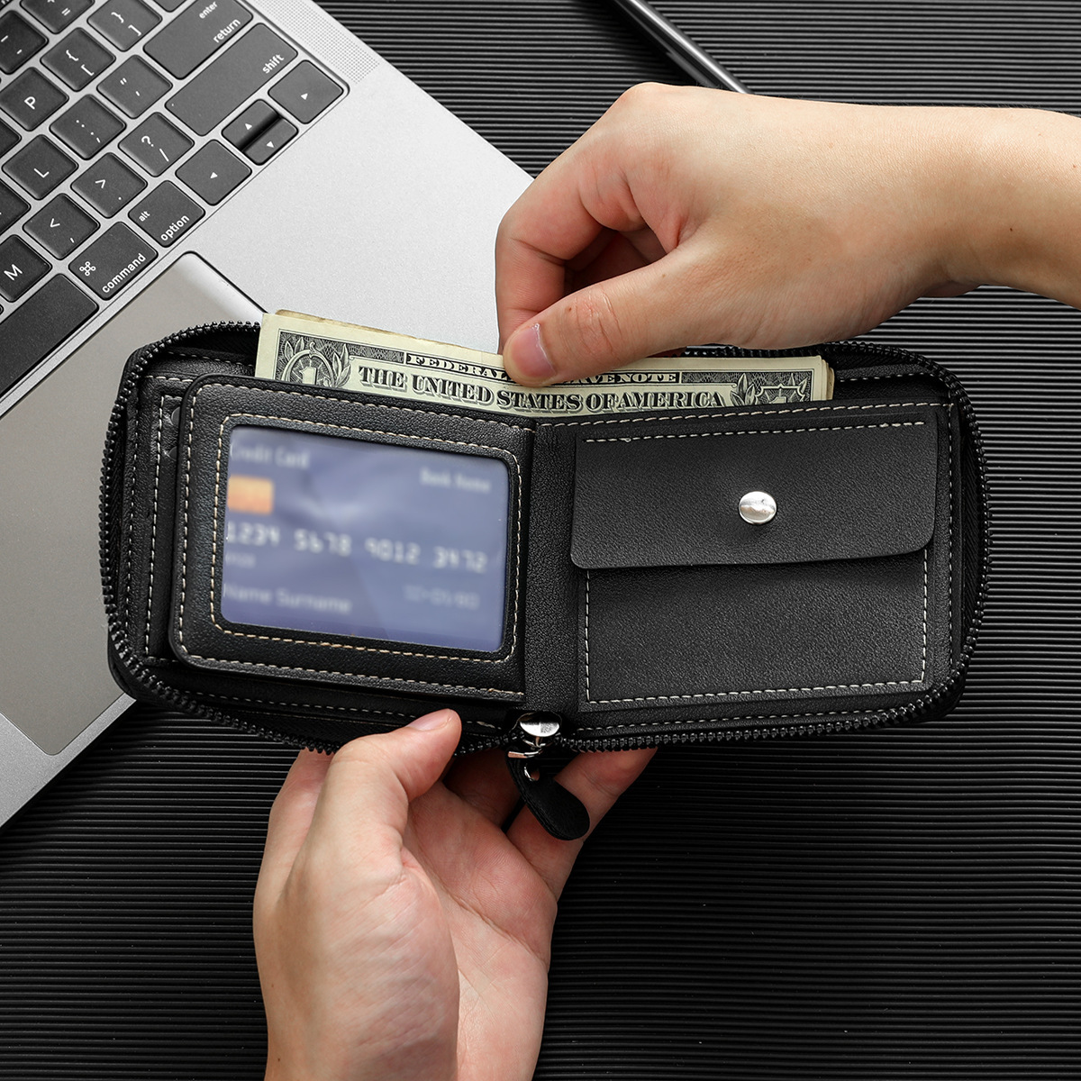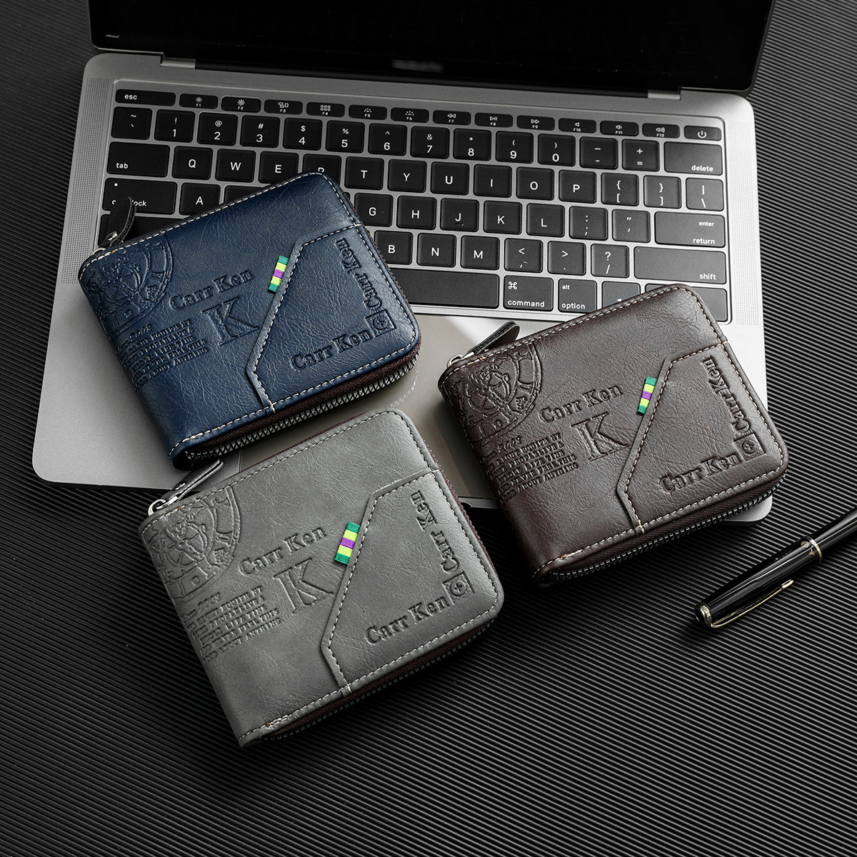 2025 새로운 크로스 보더 남성용 지갑 짧은 가로 지퍼 70% off 동전 지갑 레트로 캐주얼 버클 스퀘어 백스토어 가기