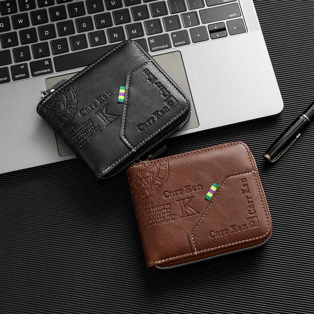 2025 새로운 크로스 보더 남성용 지갑 짧은 가로 지퍼 70% off 동전 지갑 레트로 캐주얼 버클 스퀘어 백