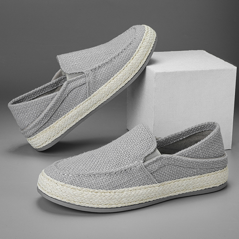 심플한 복고풍 린넨 통기성 남성 신발 여름 슬립온 끈 어부 신발 남성 올드 베이징 천 신발 대외 무역 운동화스토어 가기