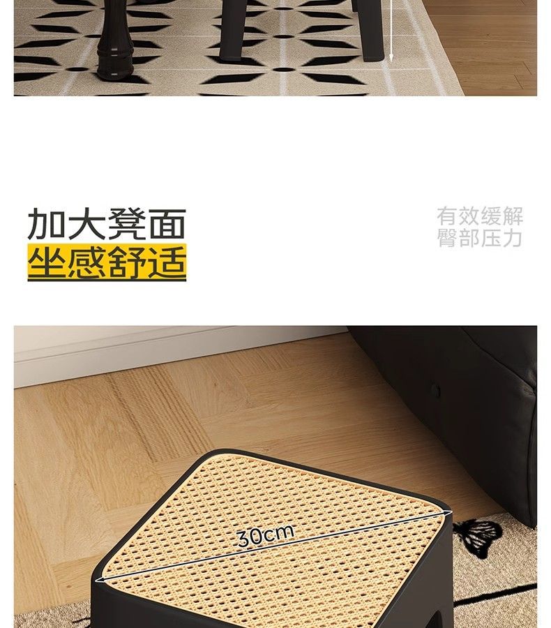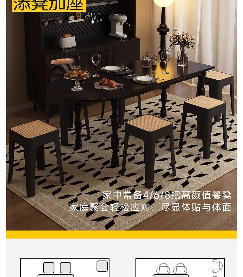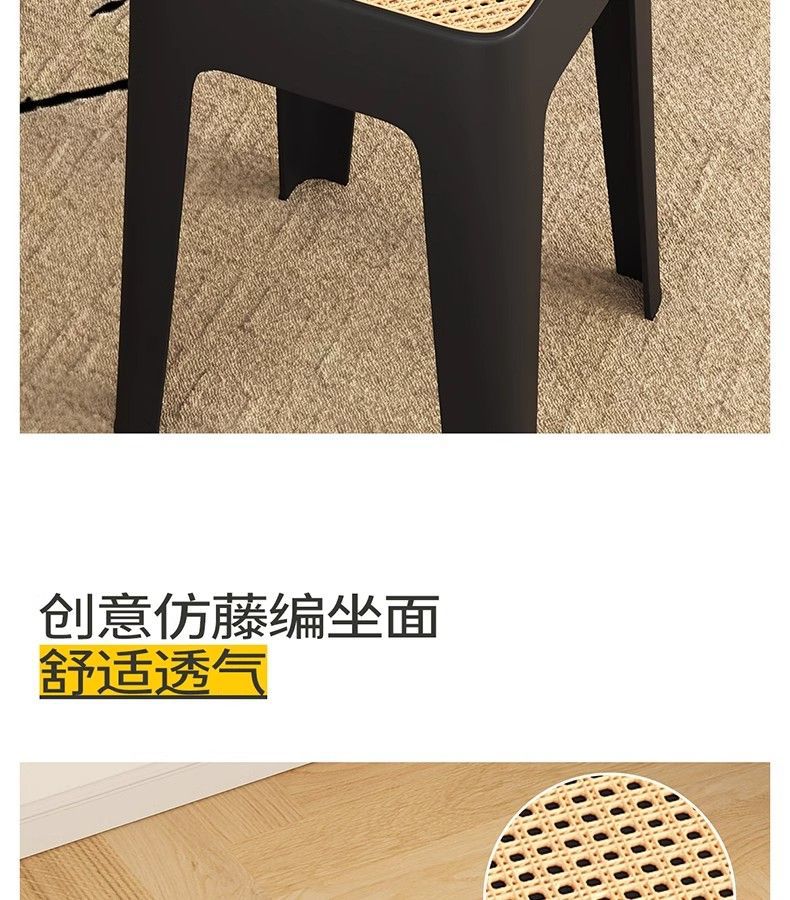 2024 새로운 중공 플라스틱 의자는 장기간 앉아 있어도 편안하고 두꺼워집니다. 가정용 두꺼운 현대식 쌓을 수 있는 복고풍 의자