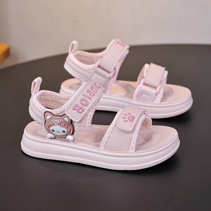 어린이 오픈 발가락 해변 신발 2025 봄과 여름 새로운 여자 샌들 귀여운 곰 벨크로 어린이 신발
