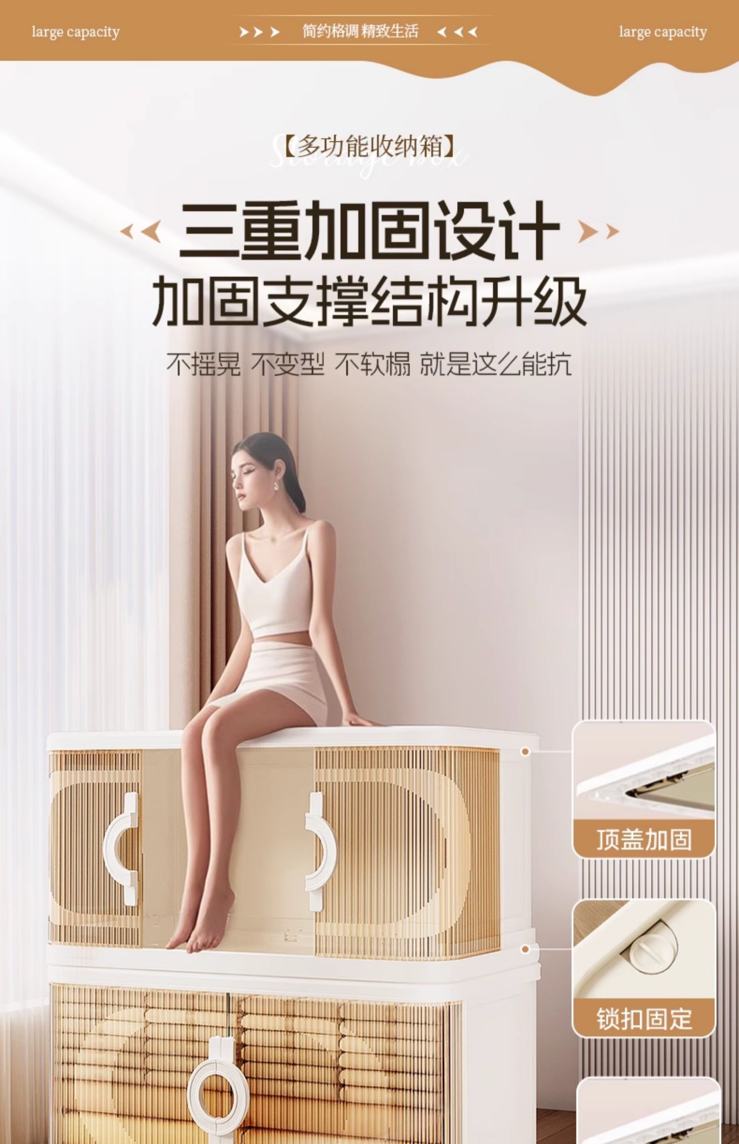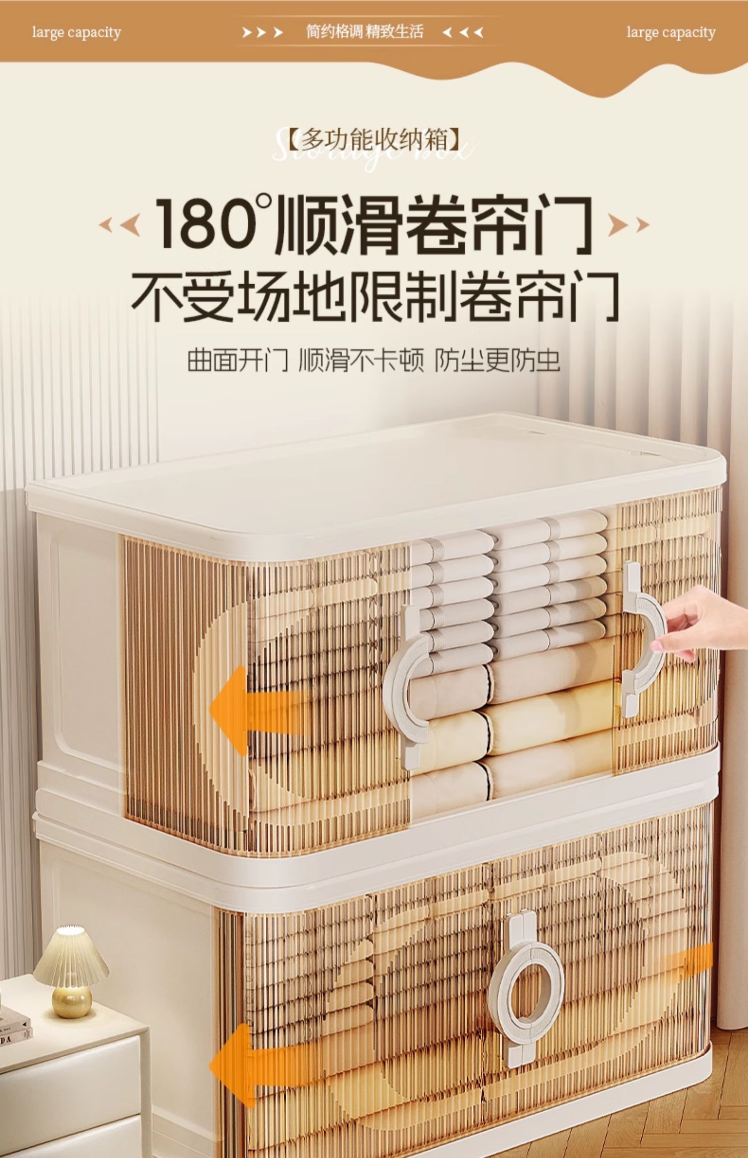 • [크림화이트] 5겹丨커버 1개, 박스 5개 + 바퀴 4개 [롤링 셔터 도어 디자인 2세대 라이트 럭셔리 핸들]