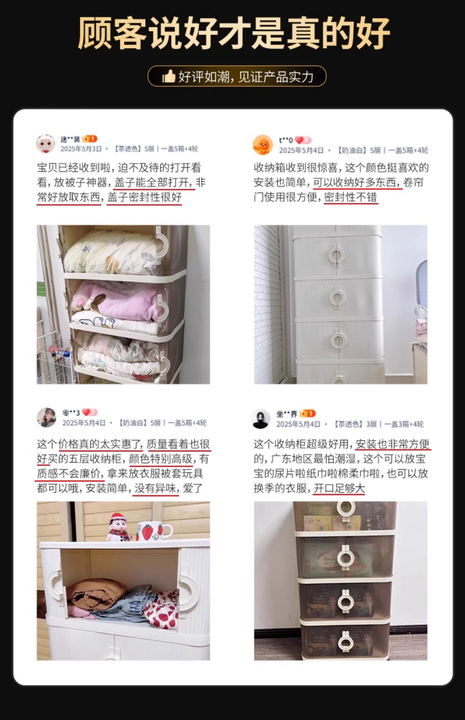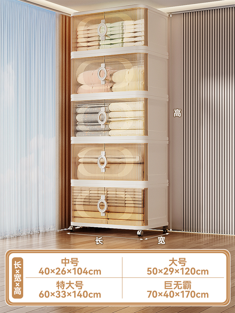 • [차투명색상] 5겹丨커버 1개, 박스 5개 + 바퀴 4개 [2세대 가벼운 고급 손잡이 롤링 셔터 도어 디자인]