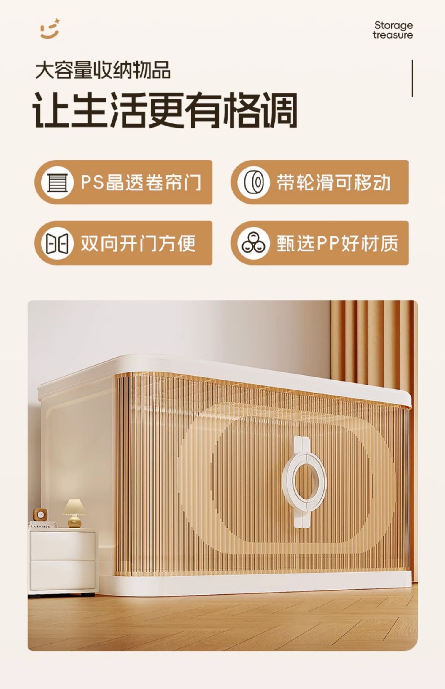 • [크림화이트] 4겹 丨커버 1개, 박스 4개 + 바퀴 4개 [롤링 셔터 도어 디자인 2세대 라이트 럭셔리 핸들]